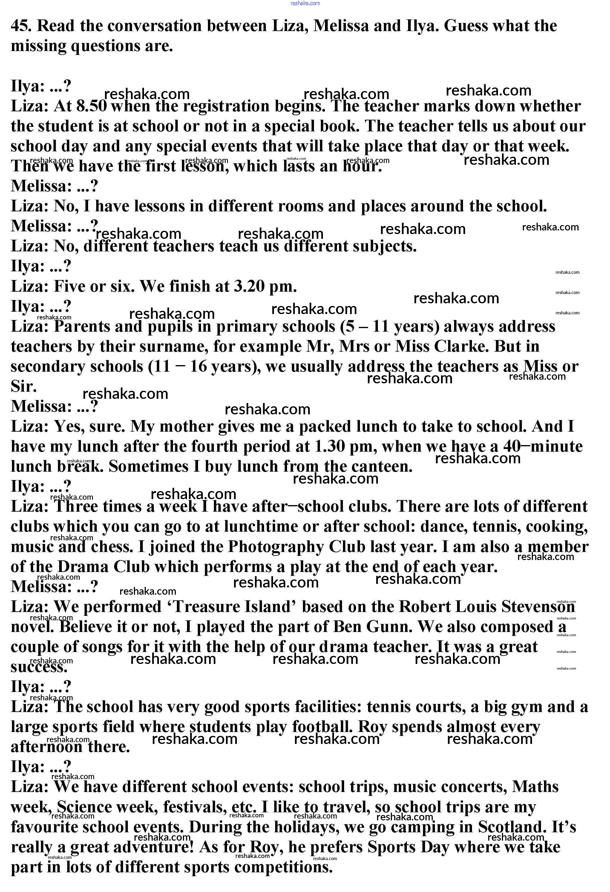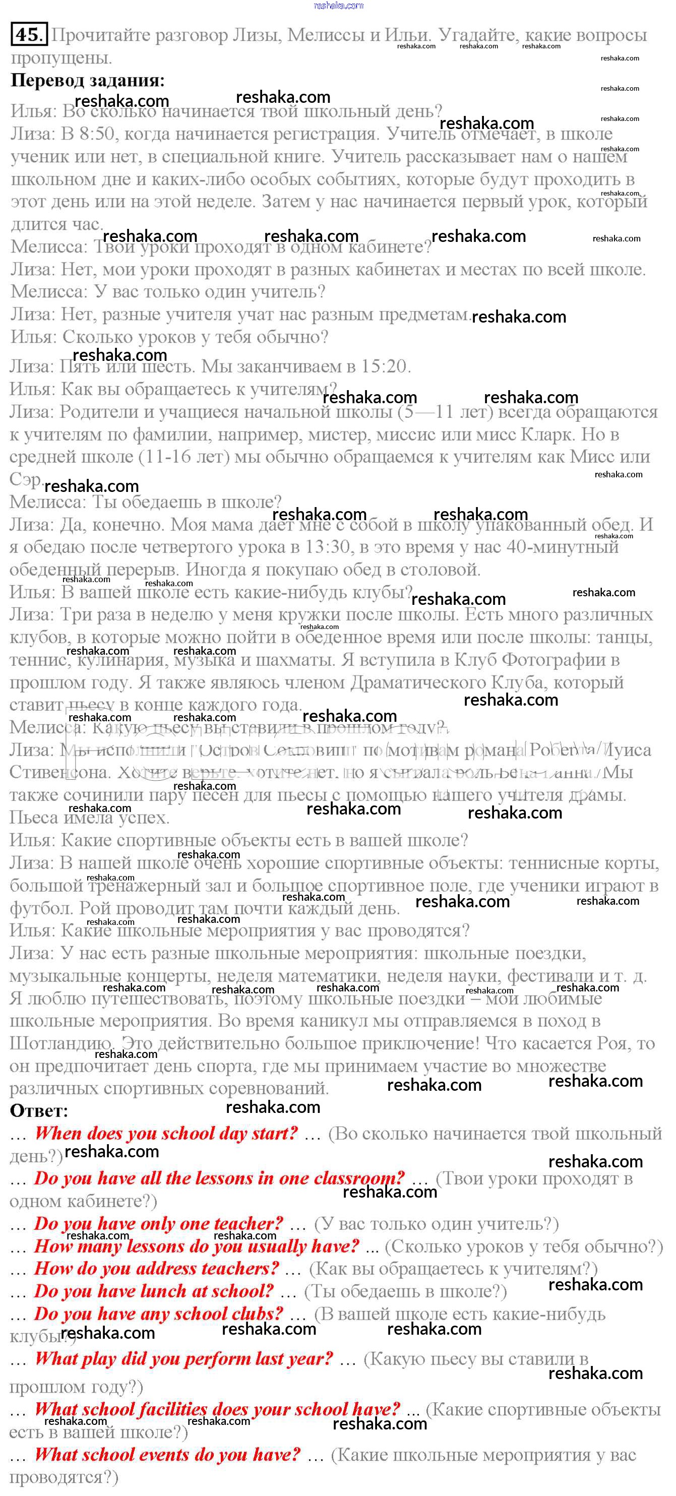 Решака - онлайн ответы Английский язык Биболетова, Денисенко за 6 класс Учебник ФГОС 2015 - 45