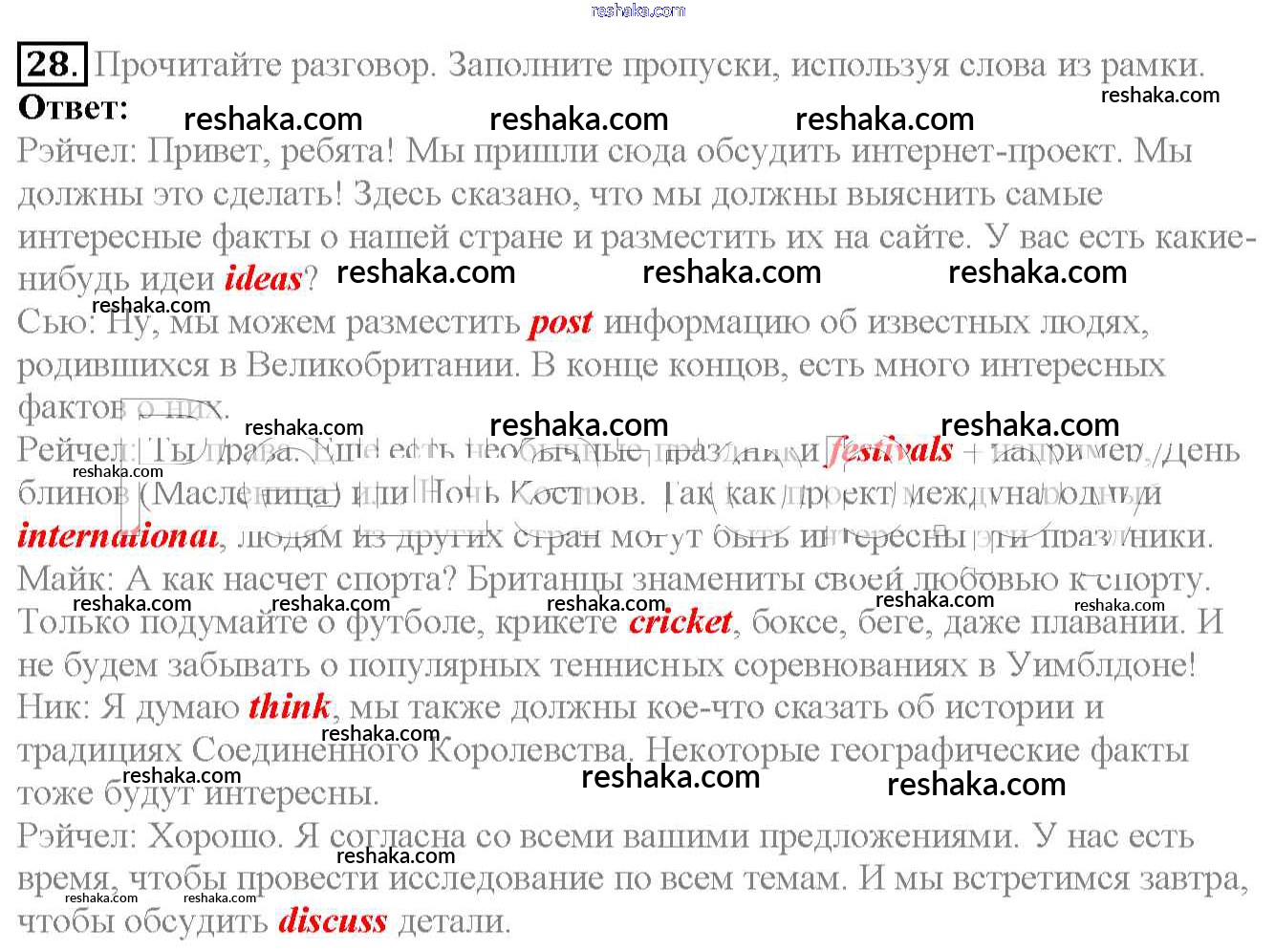 Решака - онлайн ответы Английский язык Биболетова, Денисенко за 6 класс Учебник ФГОС 2015 - 28