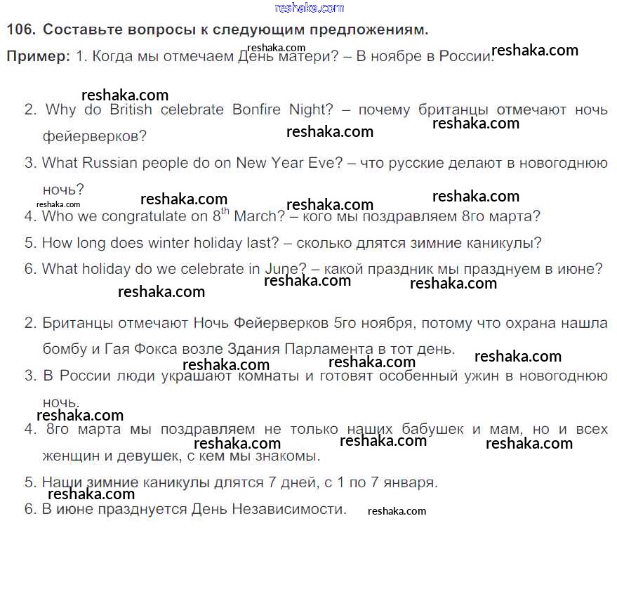 Решака - онлайн ответы Английский язык Биболетова, Денисенко за 6 класс Учебник ФГОС 2015 - 106