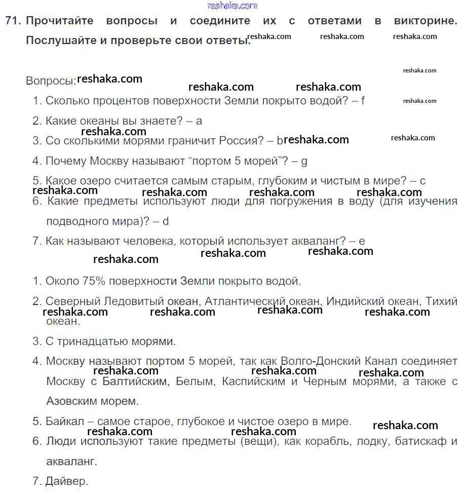 Решака - онлайн ответы Английский язык Биболетова, Денисенко за 6 класс Учебник ФГОС 2015 - 71