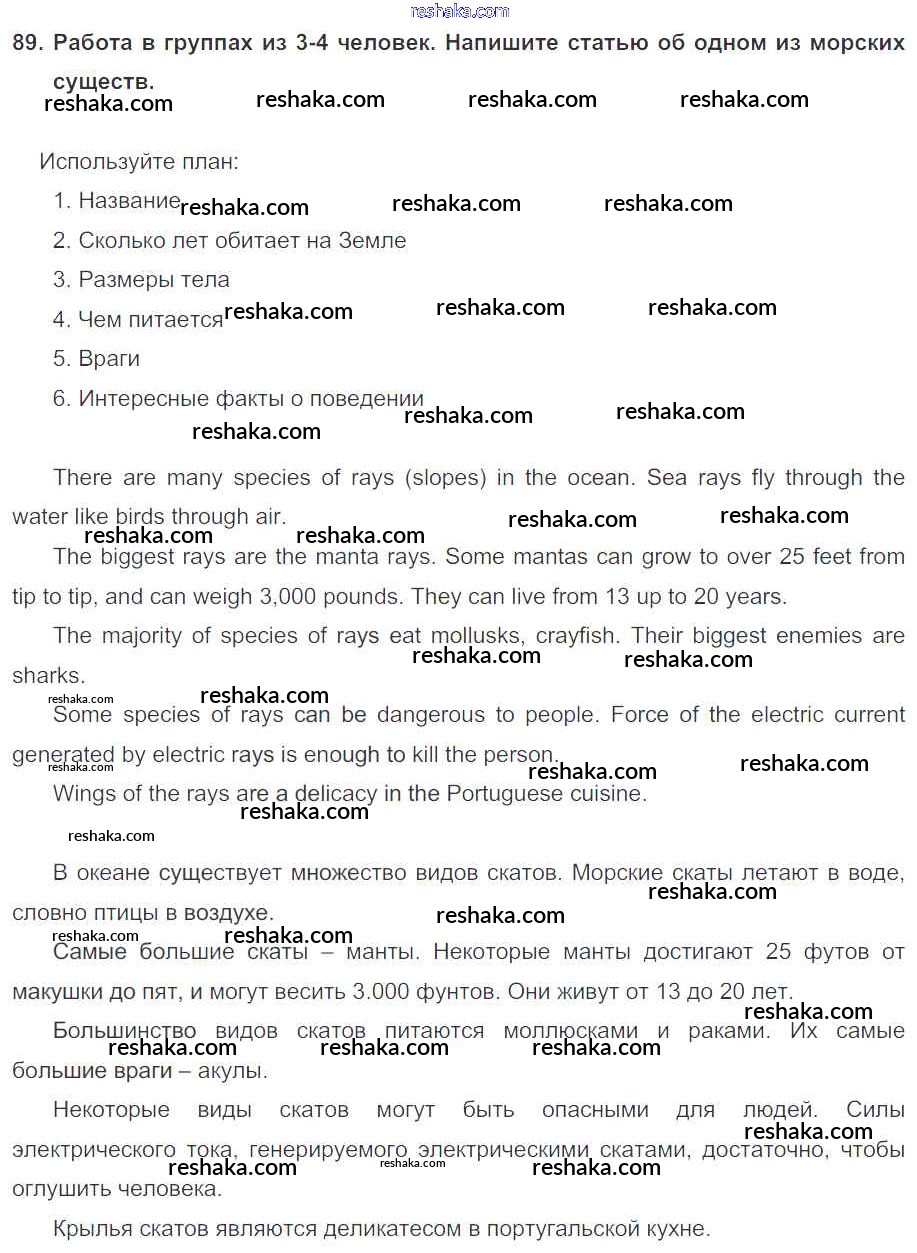 Решака - онлайн ответы Английский язык Биболетова, Денисенко за 6 класс Учебник ФГОС 2015 - 89