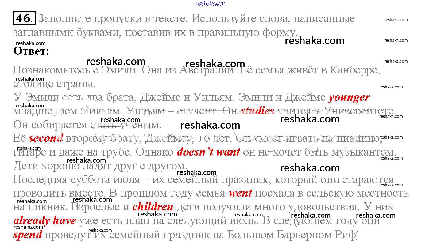 Решака - онлайн ответы Английский язык Биболетова, Денисенко за 6 класс Рабочая тетрадь ФГОС 2019 - 46