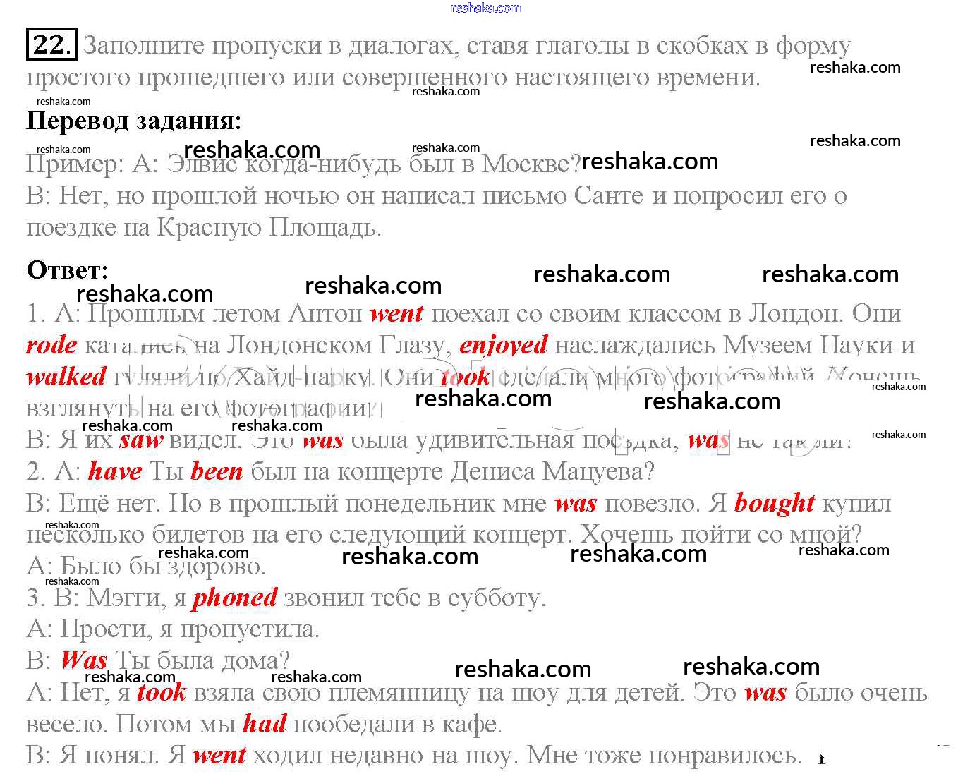Решака - онлайн ответы Английский язык Биболетова, Денисенко за 6 класс Рабочая тетрадь ФГОС 2019 - 22