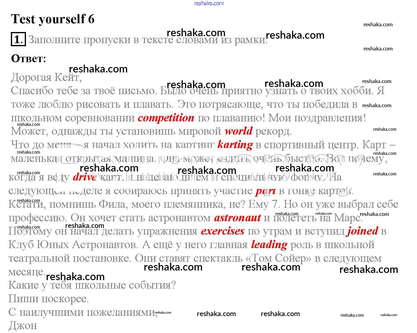 Решака - онлайн ответы Английский язык Биболетова, Денисенко за 6 класс Рабочая тетрадь ФГОС 2019 - 1
