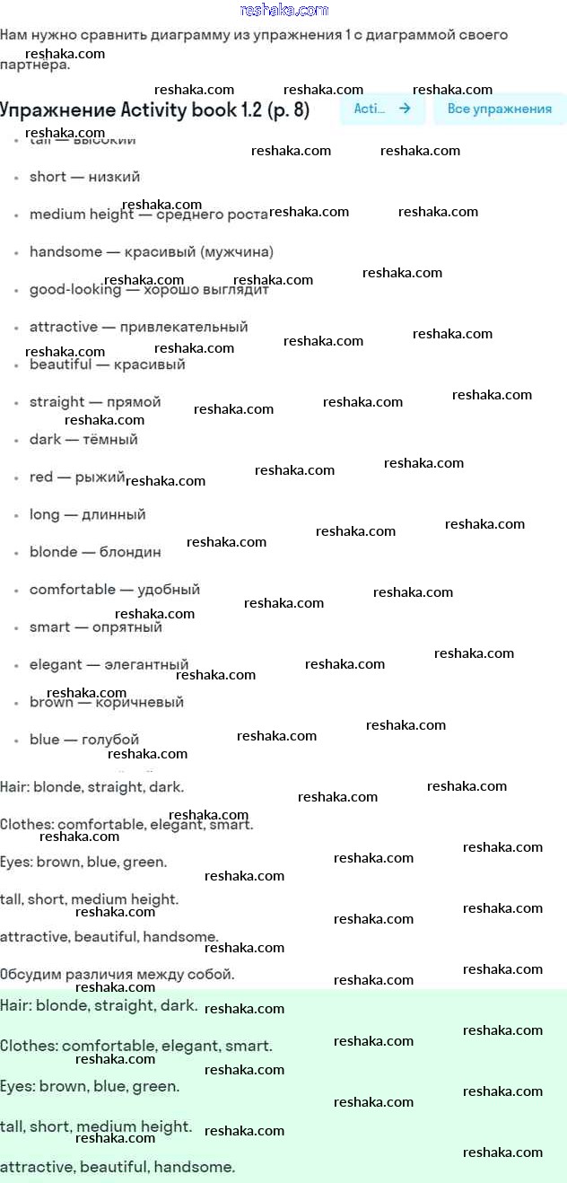 Представляем вам сборники по Английскому языку, с готовыми ответами к Учебнику Кузовлев школьной программы для учеников шестой класса. Это не просто гдз с ответом, а с подсказками, как верно решить Next lesson is a consolidation lesson Unit 1. What do you look like? 1. Проверяй домашку с умом и получай высший балл!