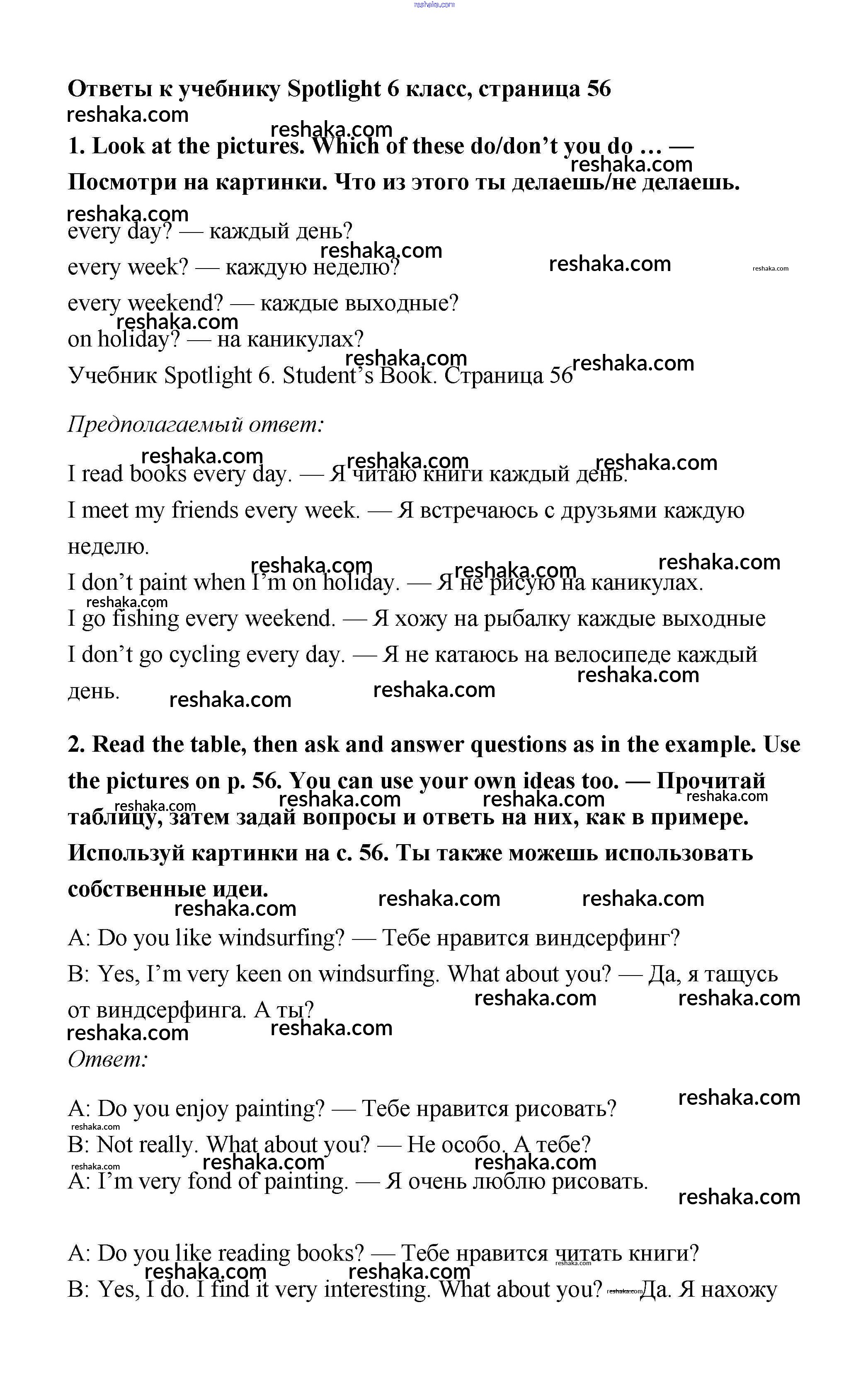 Решака - онлайн ответы Английский язык Ваулина, Дули за 6 класс Учебник ФГОС 2017 - 56