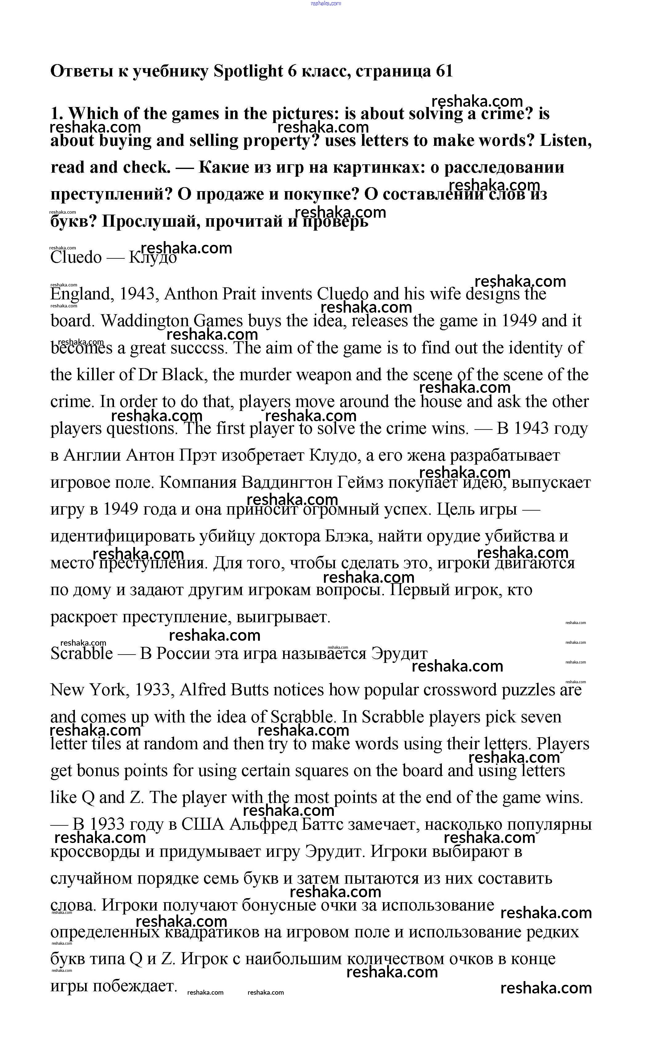 Решака - онлайн ответы Английский язык Ваулина, Дули за 6 класс Учебник ФГОС 2017 - 61