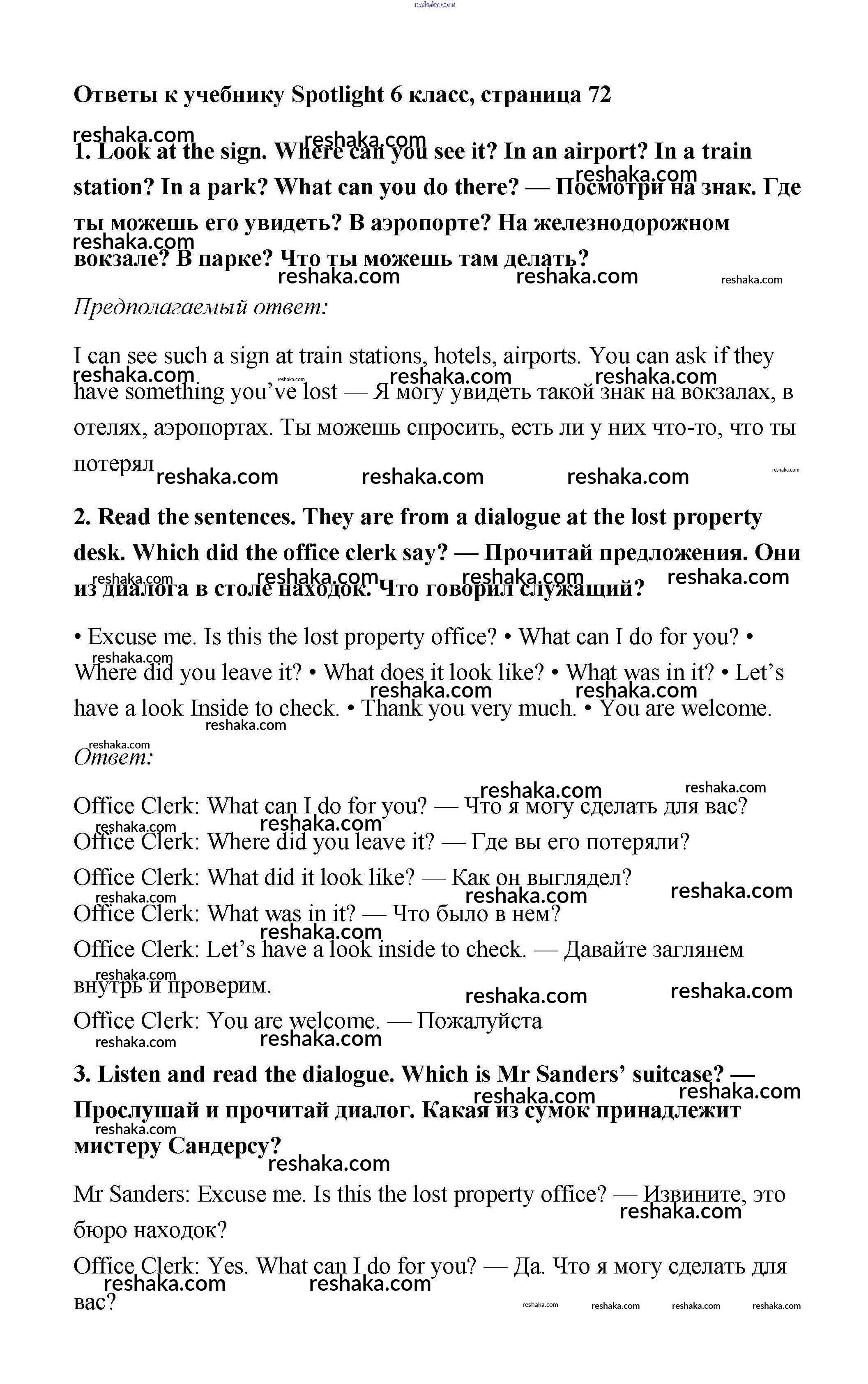 Решака - онлайн ответы Английский язык Ваулина, Дули за 6 класс Учебник ФГОС 2017 - 72