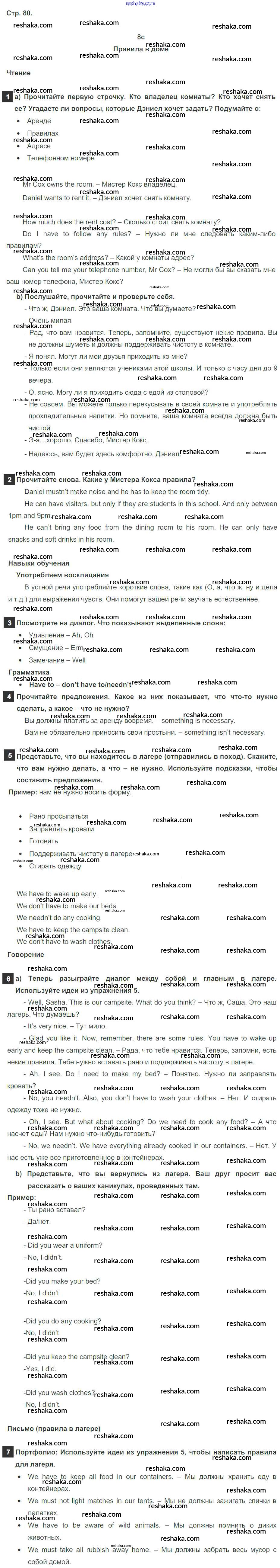 Решака - онлайн ответы Английский язык Ваулина, Дули за 6 класс Учебник ФГОС 2017 - 80