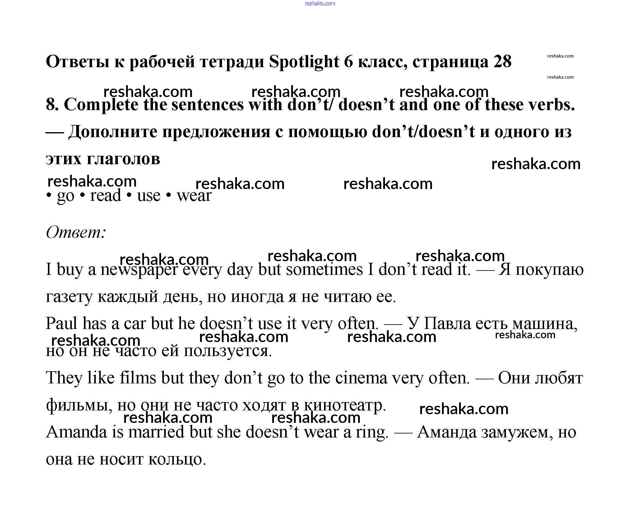 Решака - онлайн ответы Английский язык Эванс, Дули за 6 класс Рабочая тетрадь 2011 - 28