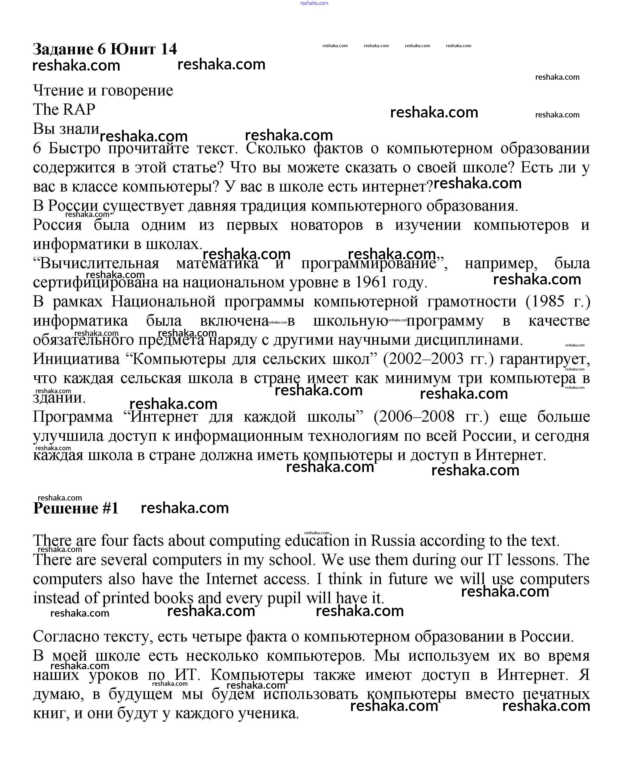 Решака - онлайн ответы Английский язык Вербицкая, Гаярделли за 6 класс Учебник ФГОС 2017 - 6