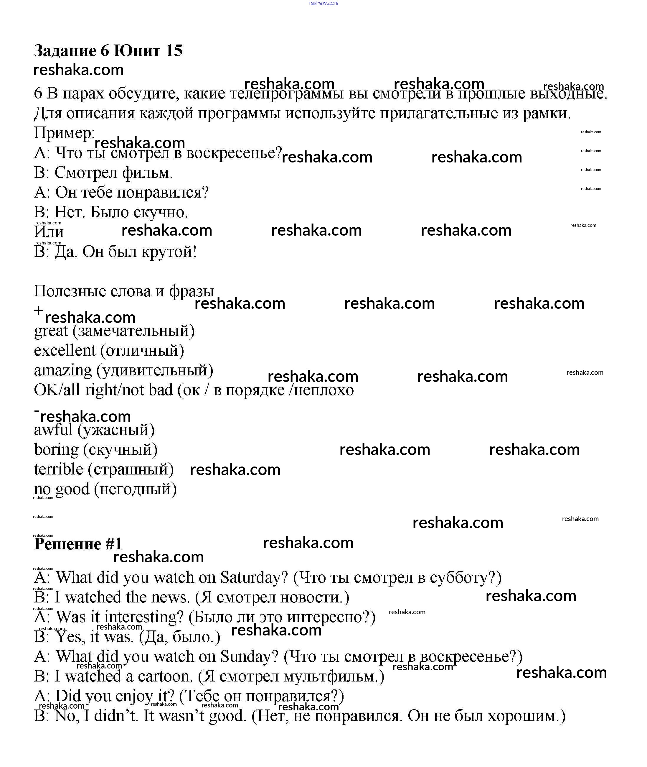 Представляем вам сборники по Английскому языку, с готовыми ответами к Учебнику Вербицкая школьной программы для учеников шестой класса. Это не просто гдз с ответом, а с подсказками, как верно решить Unit 15. TV watching Часть 2 6. Проверяй домашку с умом и получай высший балл!