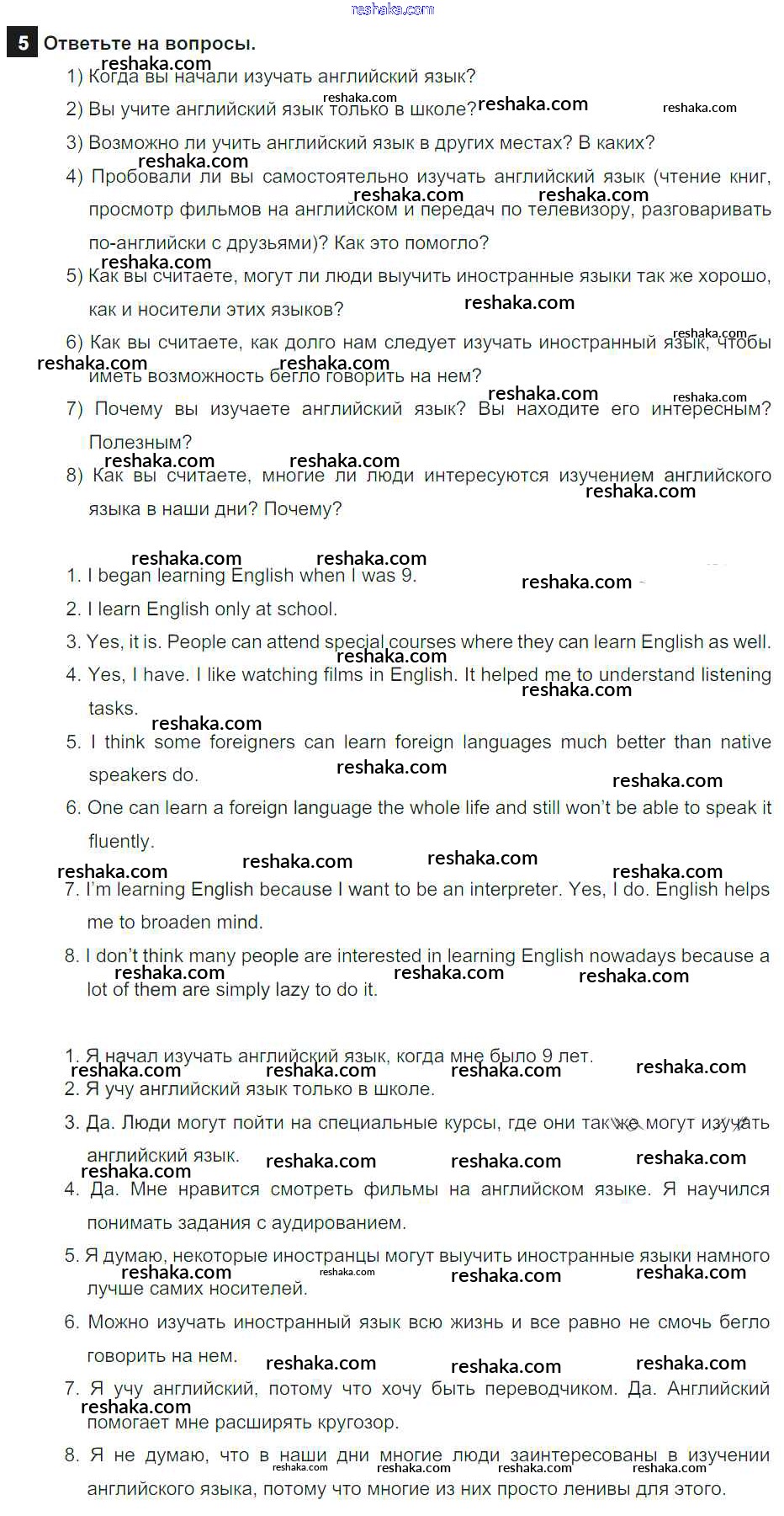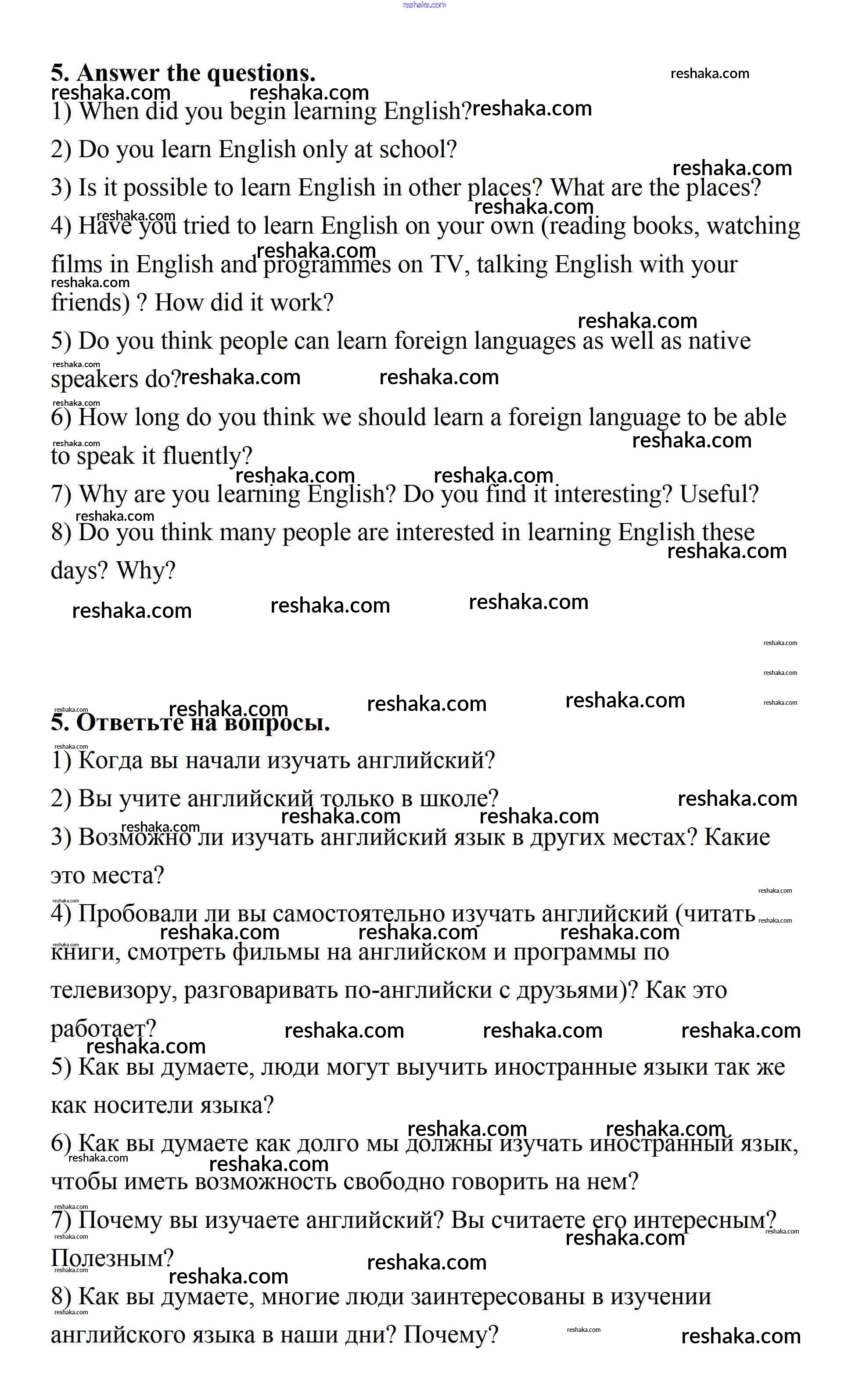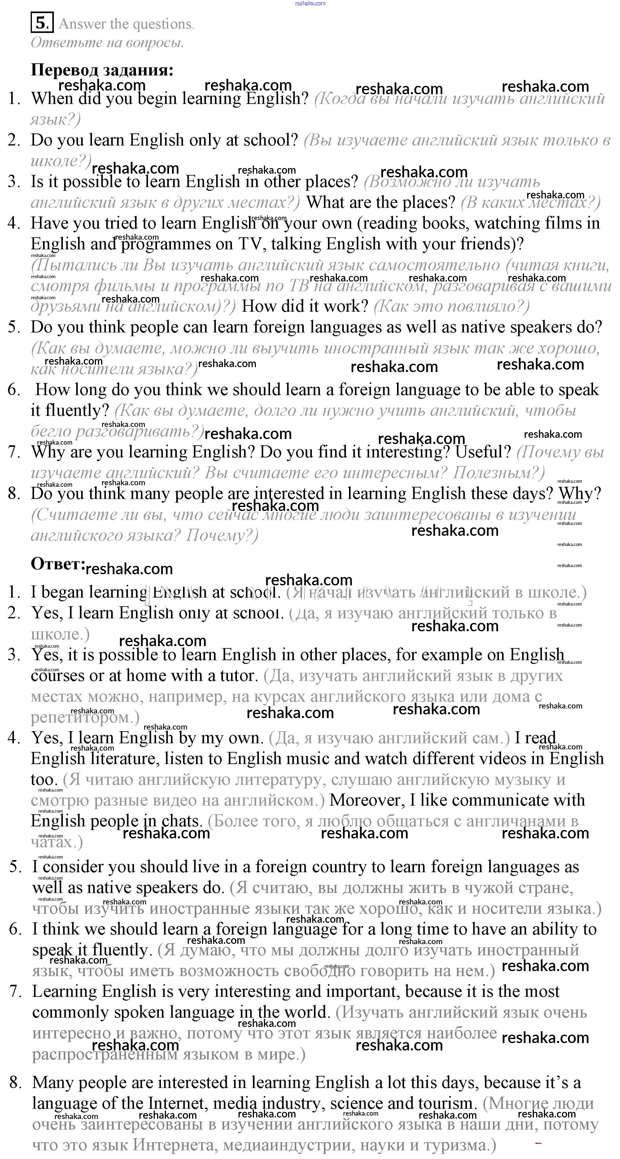 Решака - онлайн ответы Английский язык Афанасьева, Михеева за 7 класс Учебник ФГОС 2019 - 5