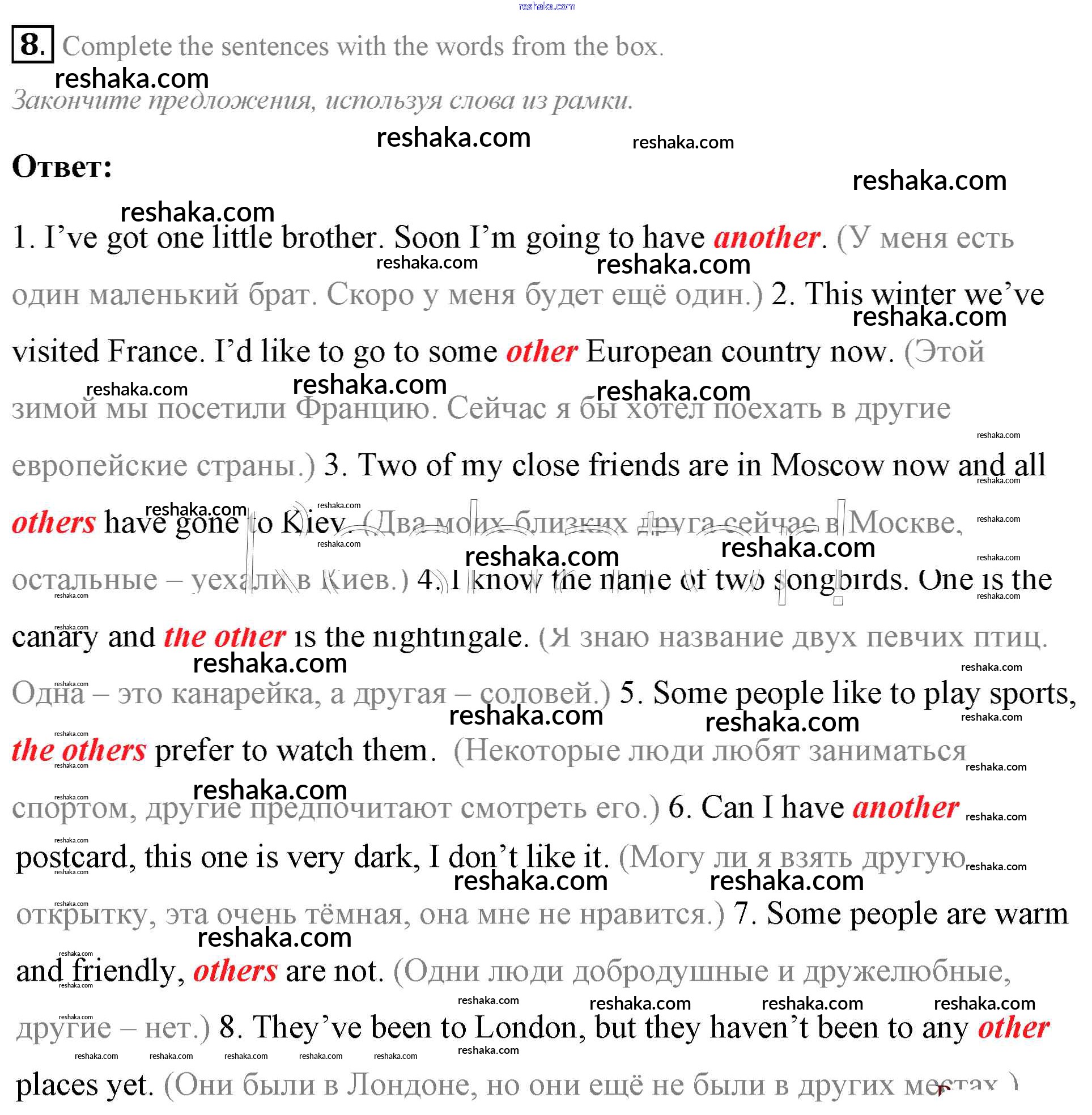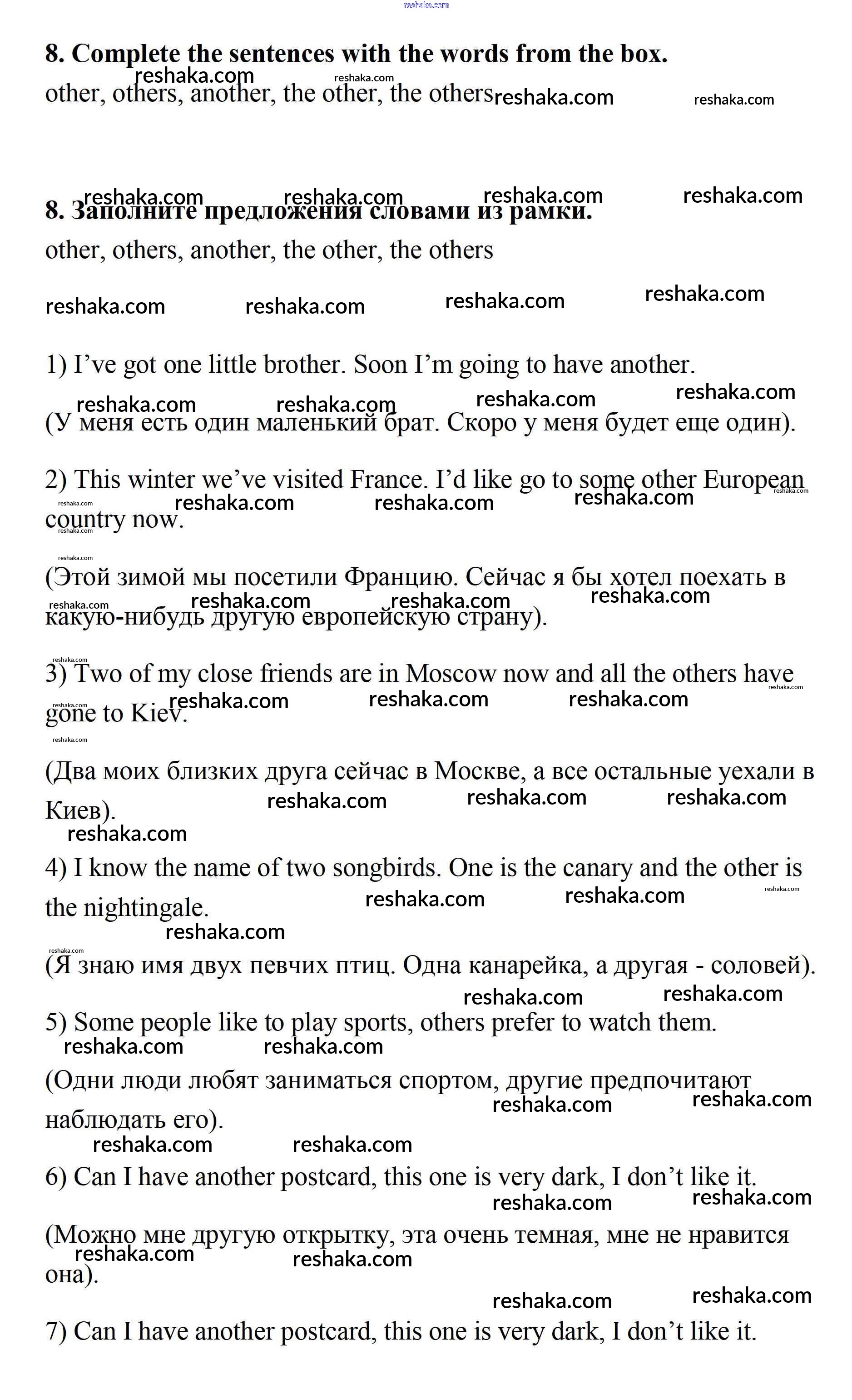 Решака - онлайн ответы Английский язык Афанасьева, Михеева за 7 класс Учебник ФГОС 2019 - 8