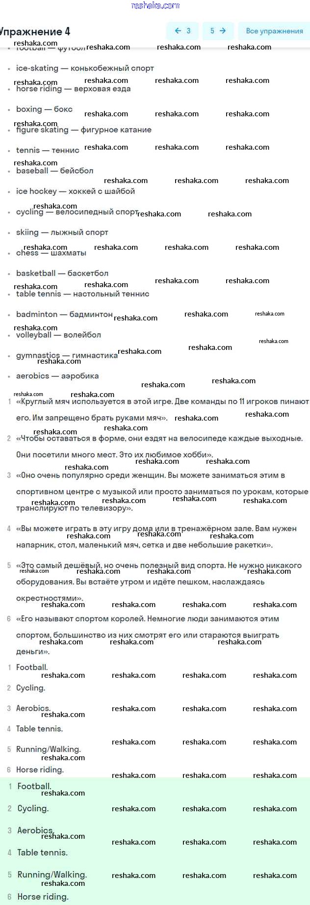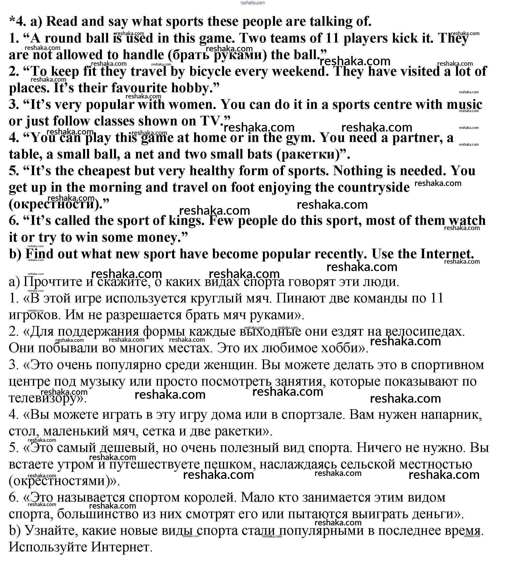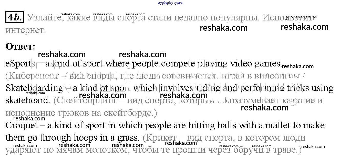 Представляем вам сборники по Английскому языку, с готовыми ответами к Учебнику Биболетова школьной программы для учеников седьмой класса. Это не просто гдз с ответом, а с подсказками, как верно решить Exercises Unit 4. Sport is fun 4. Проверяй домашку с умом и получай высший балл!
