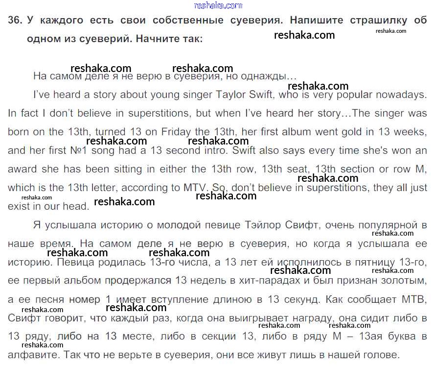 Решака - онлайн ответы Английский язык Биболетова, Трубанева за 7 класс Учебник ФГОС 2015 - 36