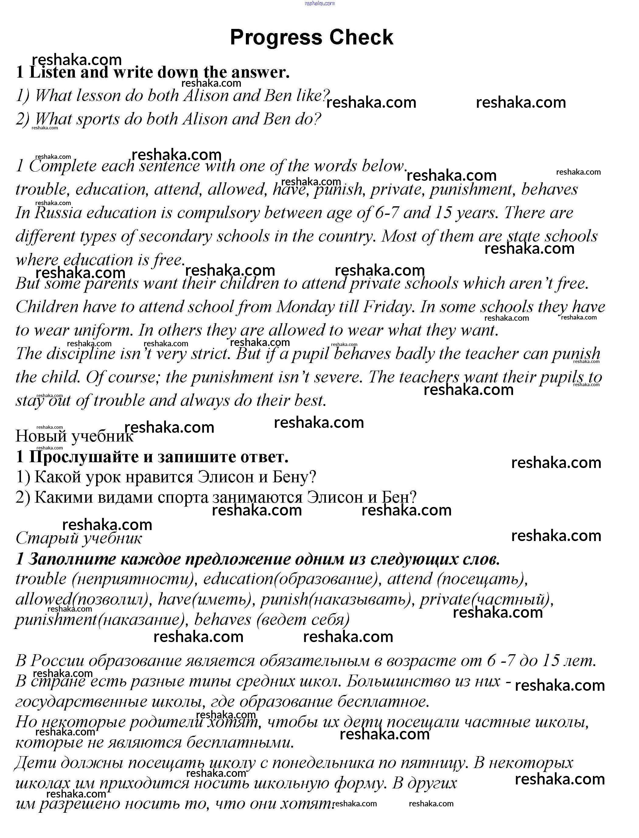 Представляем вам сборники по Английскому языку, с готовыми ответами к Учебнику Биболетова школьной программы для учеников седьмой класса. Это не просто гдз с ответом, а с подсказками, как верно решить Progress check Unit 3. Look at teenage problems: school education 1. Проверяй домашку с умом и получай высший балл!
