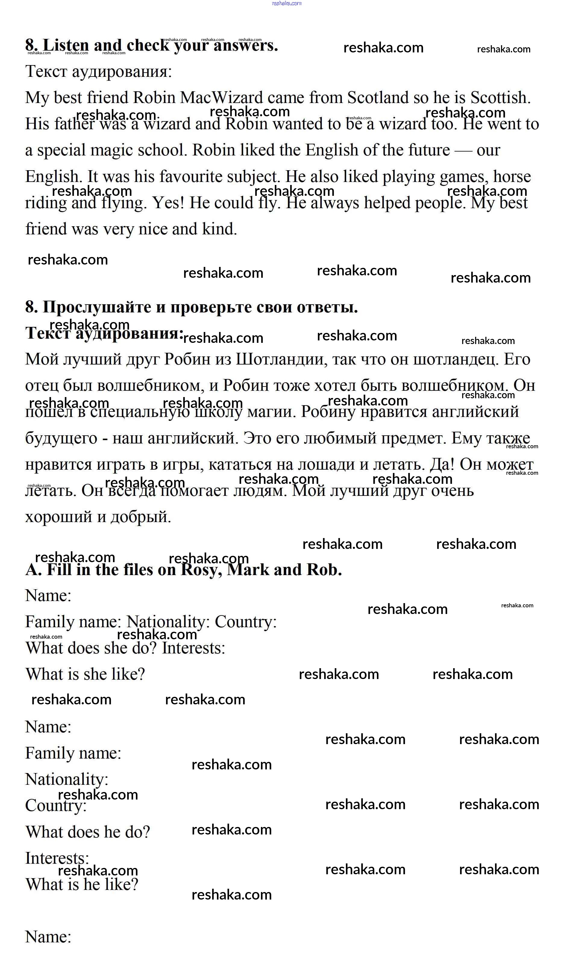 Решака - онлайн ответы Английский язык Кауфман за 7 класс Учебник ФГОС 2016 - 8