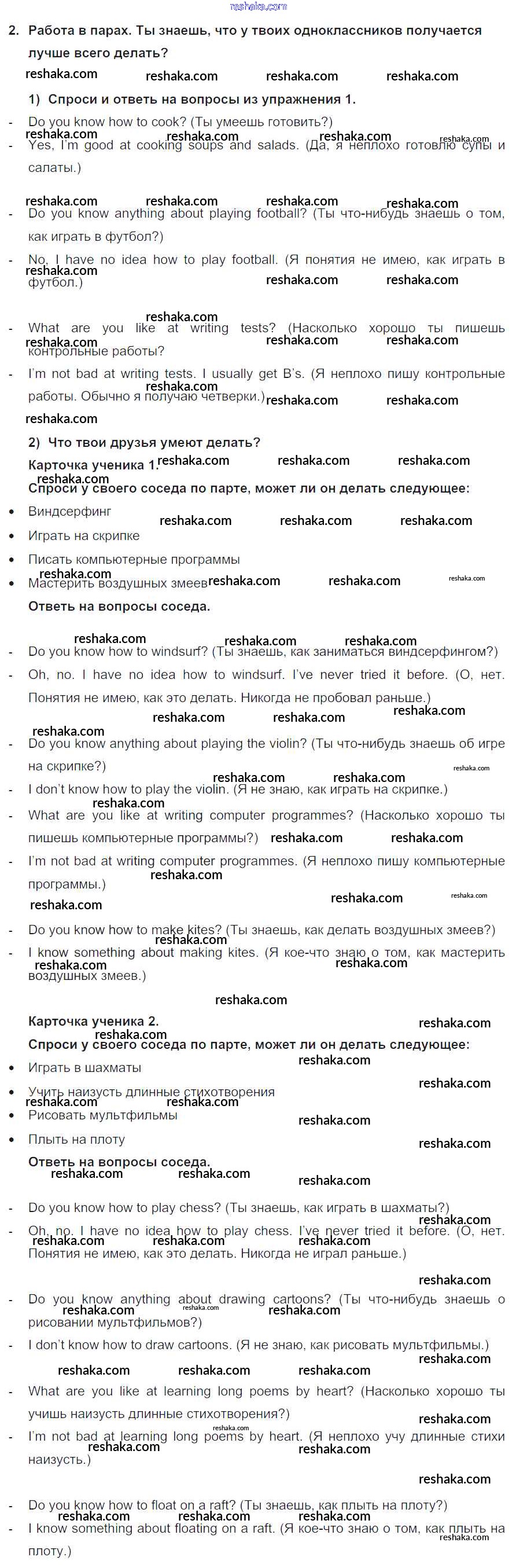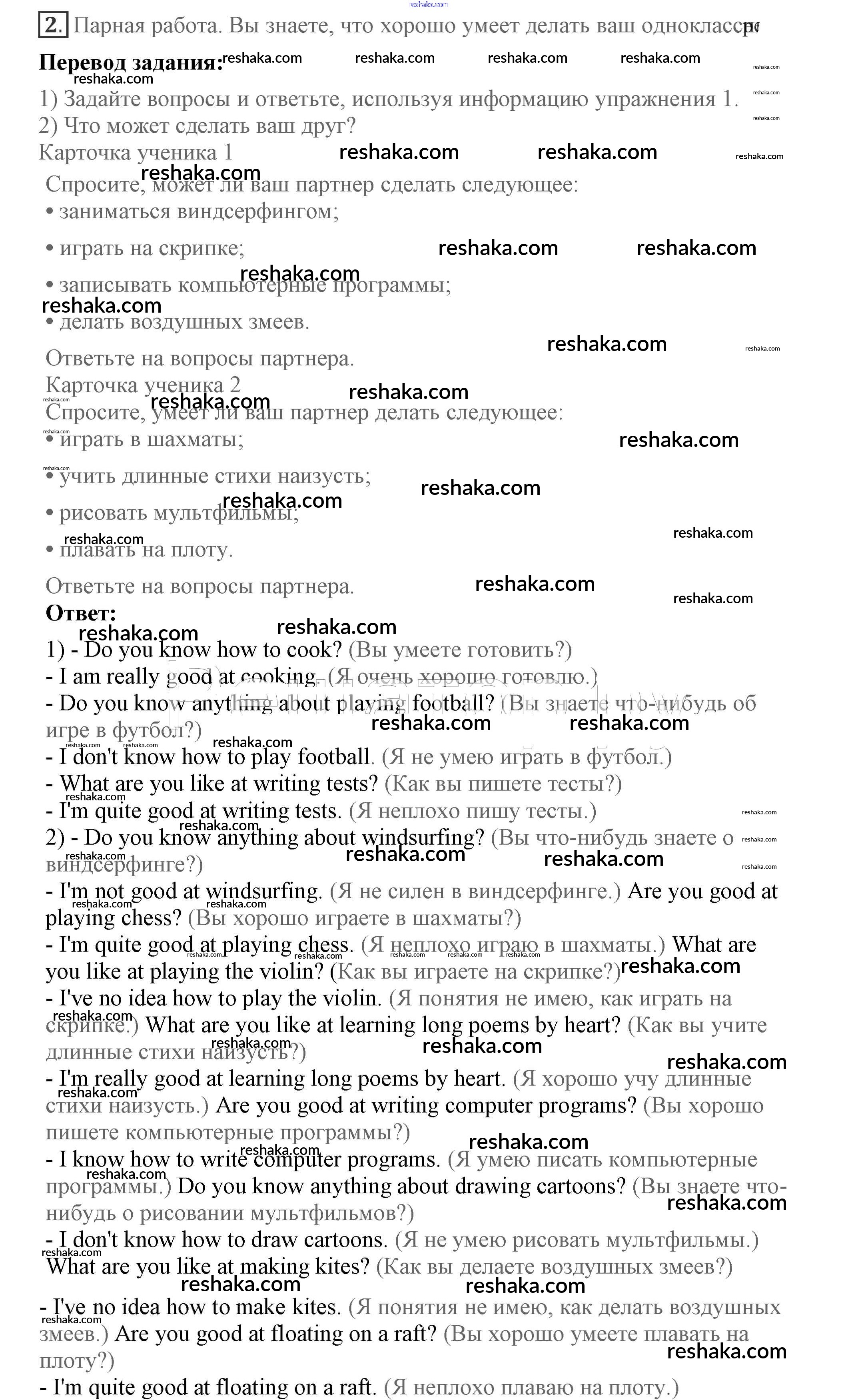 Представляем вам сборники по Английскому языку, с готовыми ответами к Учебнику Кузовлев школьной программы для учеников седьмой класса. Это не просто гдз с ответом, а с подсказками, как верно решить Lesson 5 Unit 2. What are you good at? 2. Проверяй домашку с умом и получай высший балл!