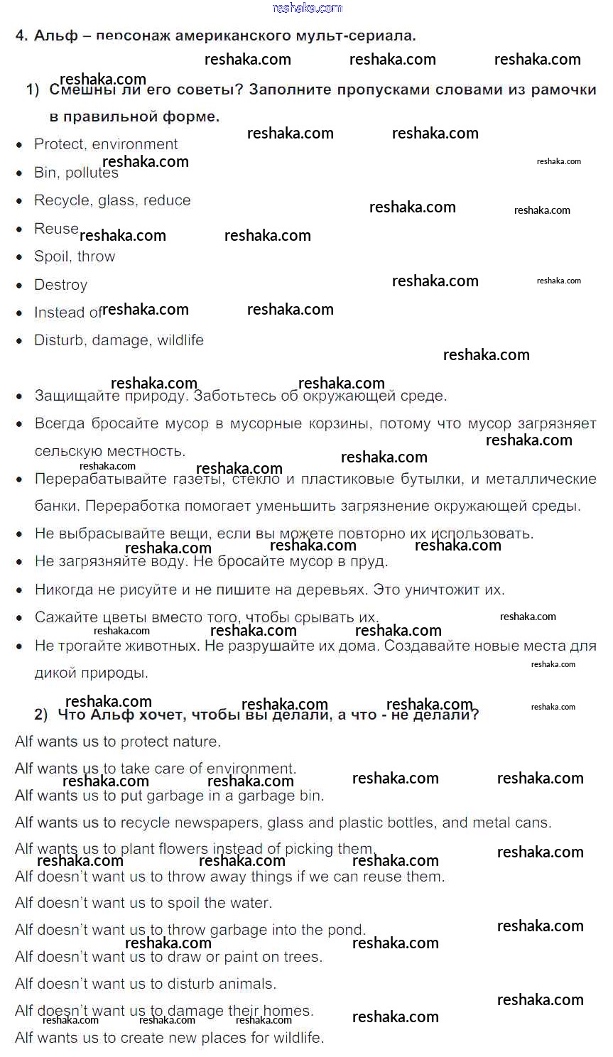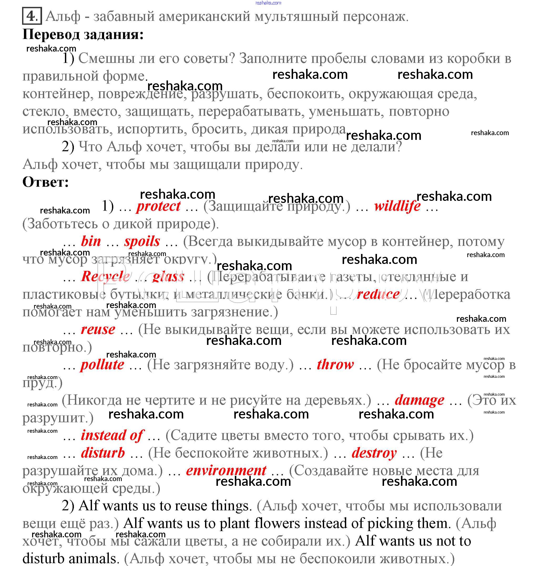 Представляем вам сборники по Английскому языку, с готовыми ответами к Учебнику Кузовлев школьной программы для учеников седьмой класса. Это не просто гдз с ответом, а с подсказками, как верно решить Lesson 1 Unit 4. Are you a friend of the planet? 4. Проверяй домашку с умом и получай высший балл!