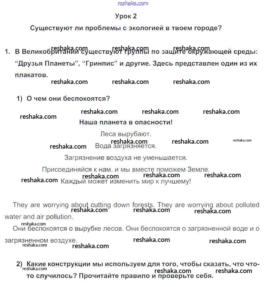 Представляем вам сборники по Английскому языку, с готовыми ответами к Учебнику Кузовлев школьной программы для учеников седьмой класса. Это не просто гдз с ответом, а с подсказками, как верно решить Lesson 2 Unit 4. Are you a friend of the planet? 1. Проверяй домашку с умом и получай высший балл!