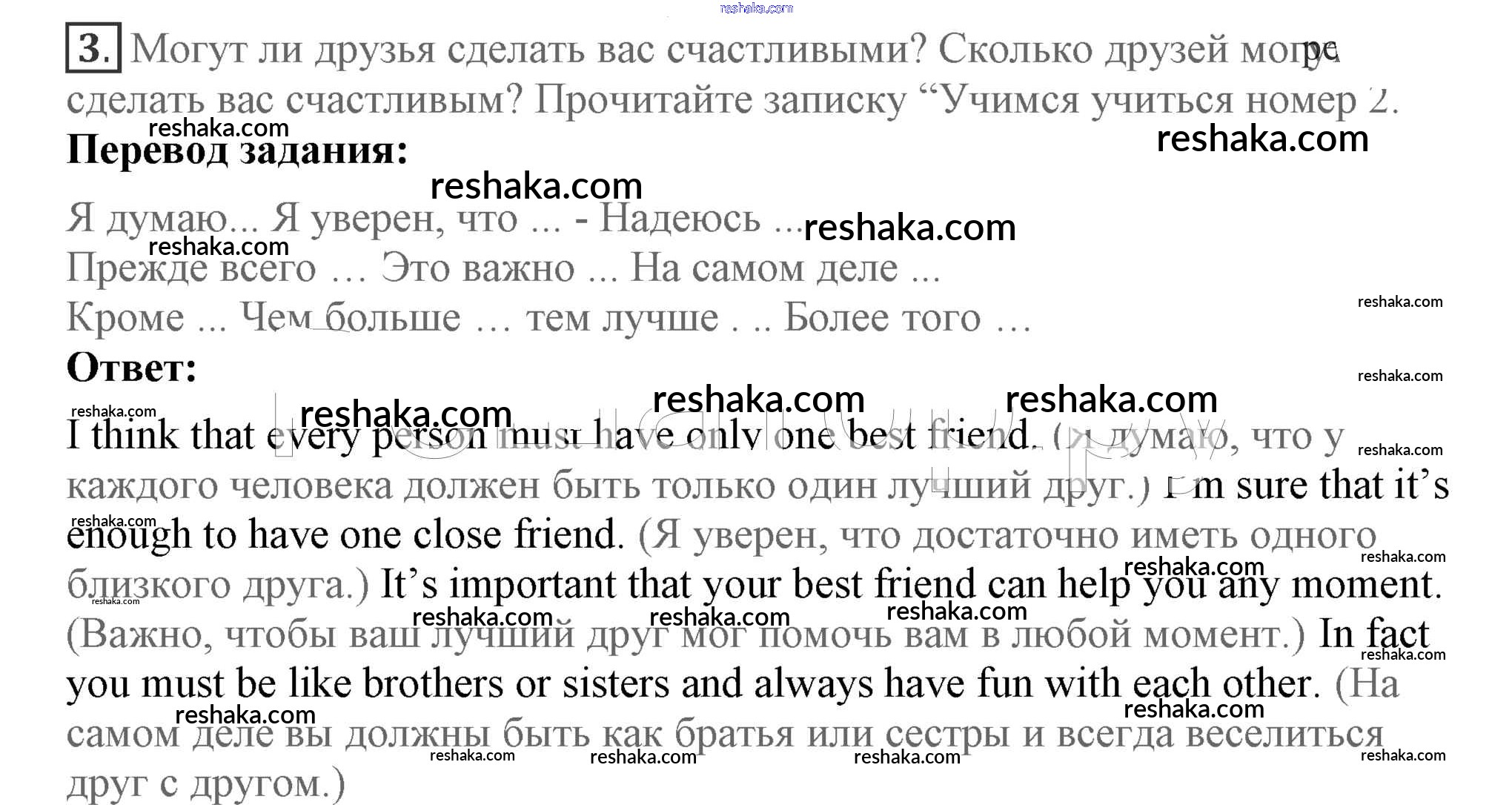Представляем вам сборники по Английскому языку, с готовыми ответами к Учебнику Кузовлев школьной программы для учеников седьмой класса. Это не просто гдз с ответом, а с подсказками, как верно решить Lesson 4 Unit 5. Are you happy with your friends? 3. Проверяй домашку с умом и получай высший балл!