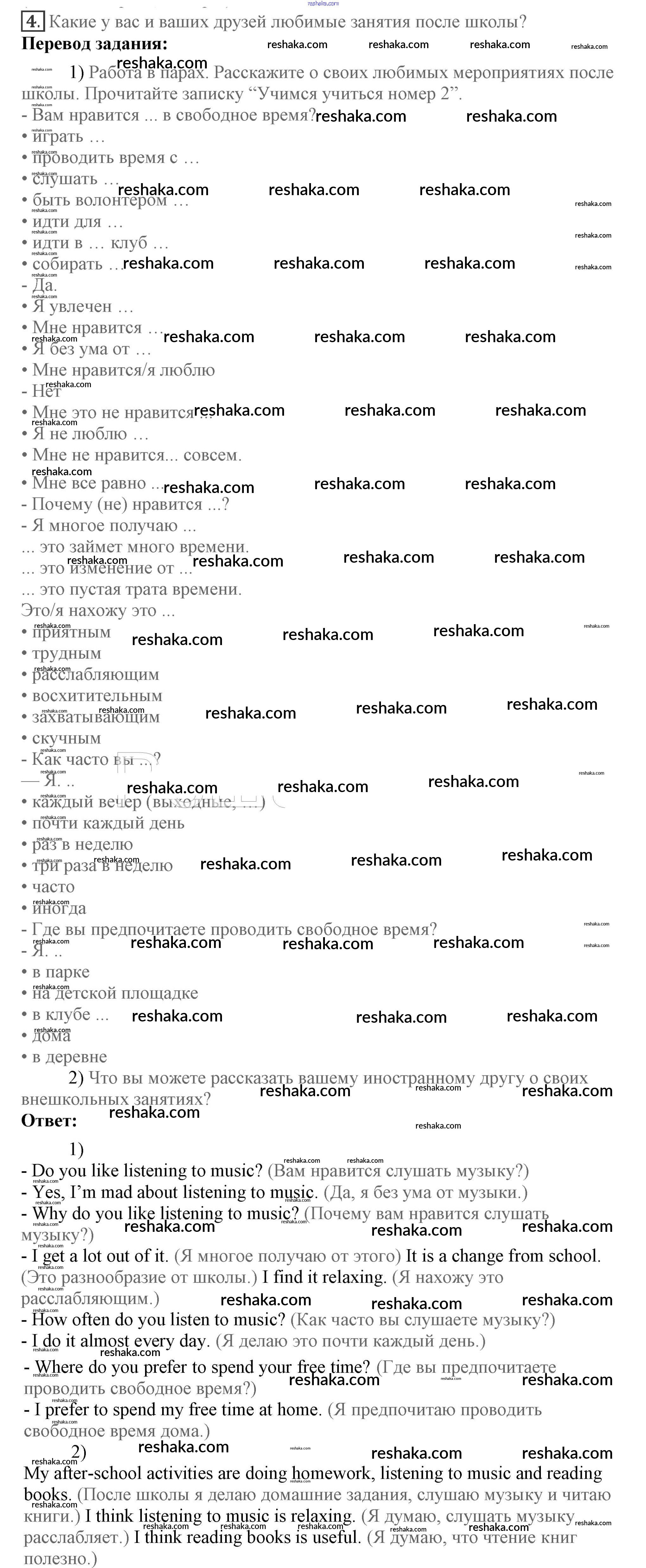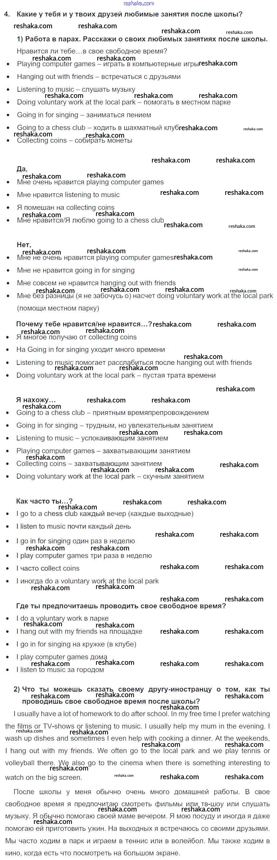 Представляем вам сборники по Английскому языку, с готовыми ответами к Учебнику Кузовлев школьной программы для учеников седьмой класса. Это не просто гдз с ответом, а с подсказками, как верно решить Lesson 1 Unit 8. How do you spend your free time? 4. Проверяй домашку с умом и получай высший балл!