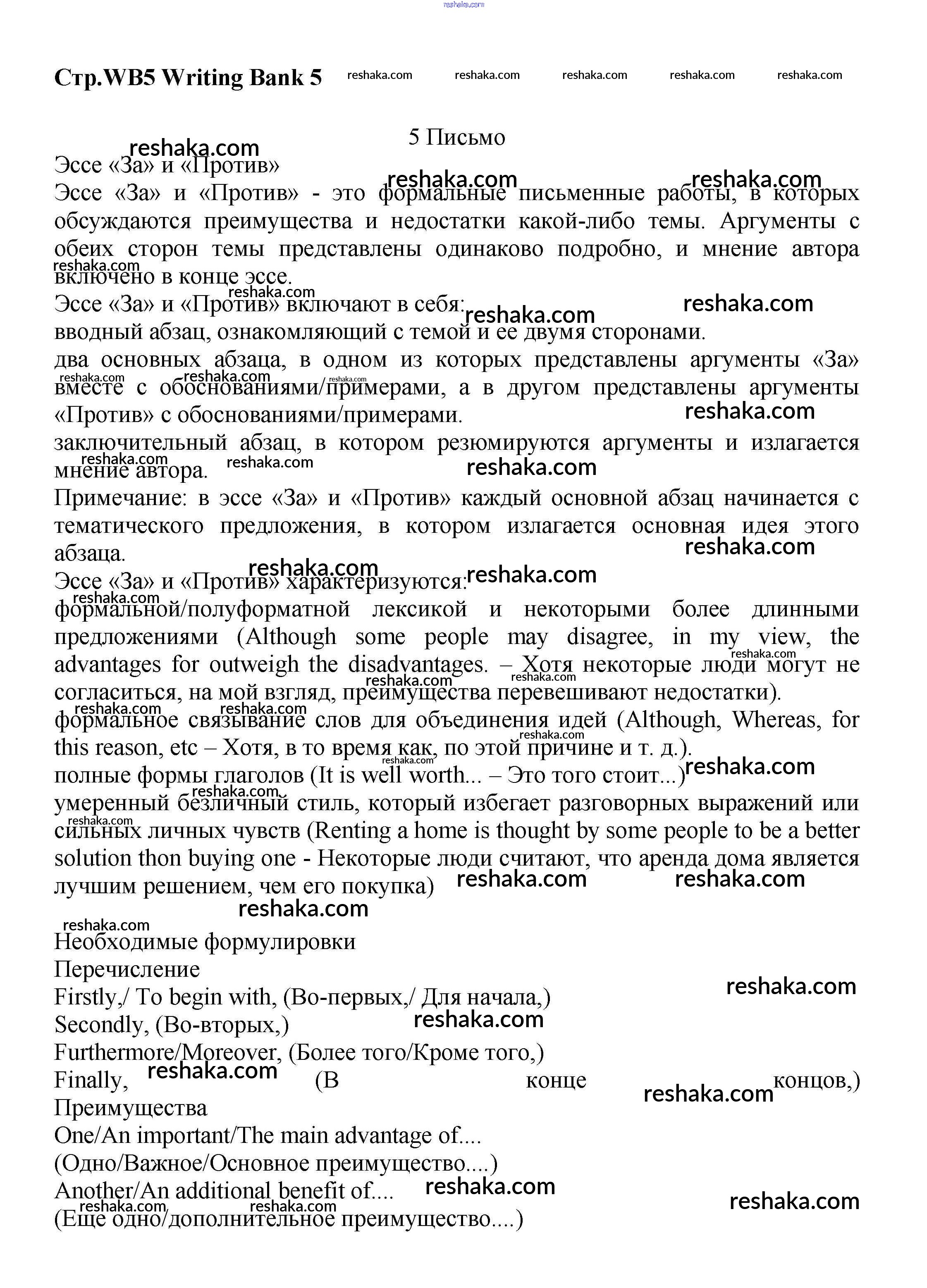Представляем вам сборники по Английскому языку, с готовыми ответами к Учебнику Баранова школьной программы для учеников седьмой класса. Это не просто гдз с ответом, а с подсказками, как верно решить Writing Bank WB5. Проверяй домашку с умом и получай высший балл!