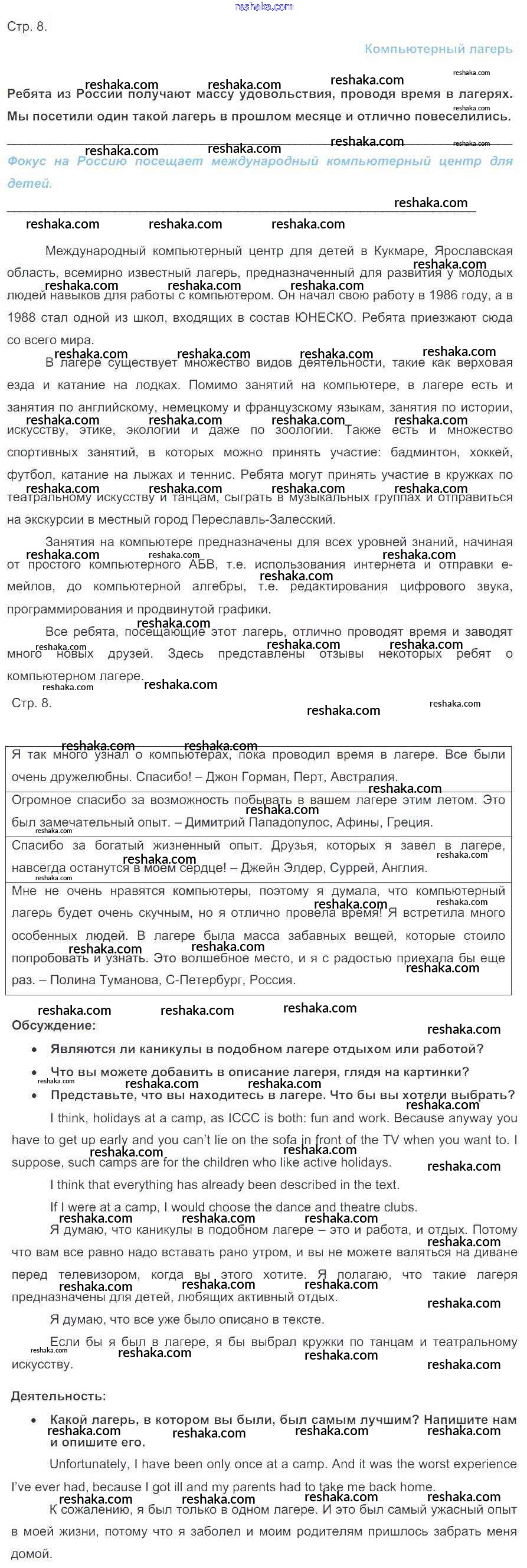 Решака - онлайн ответы Английский язык Ваулина, Дули за 7 класс Учебник ФГОС 2019 - 9