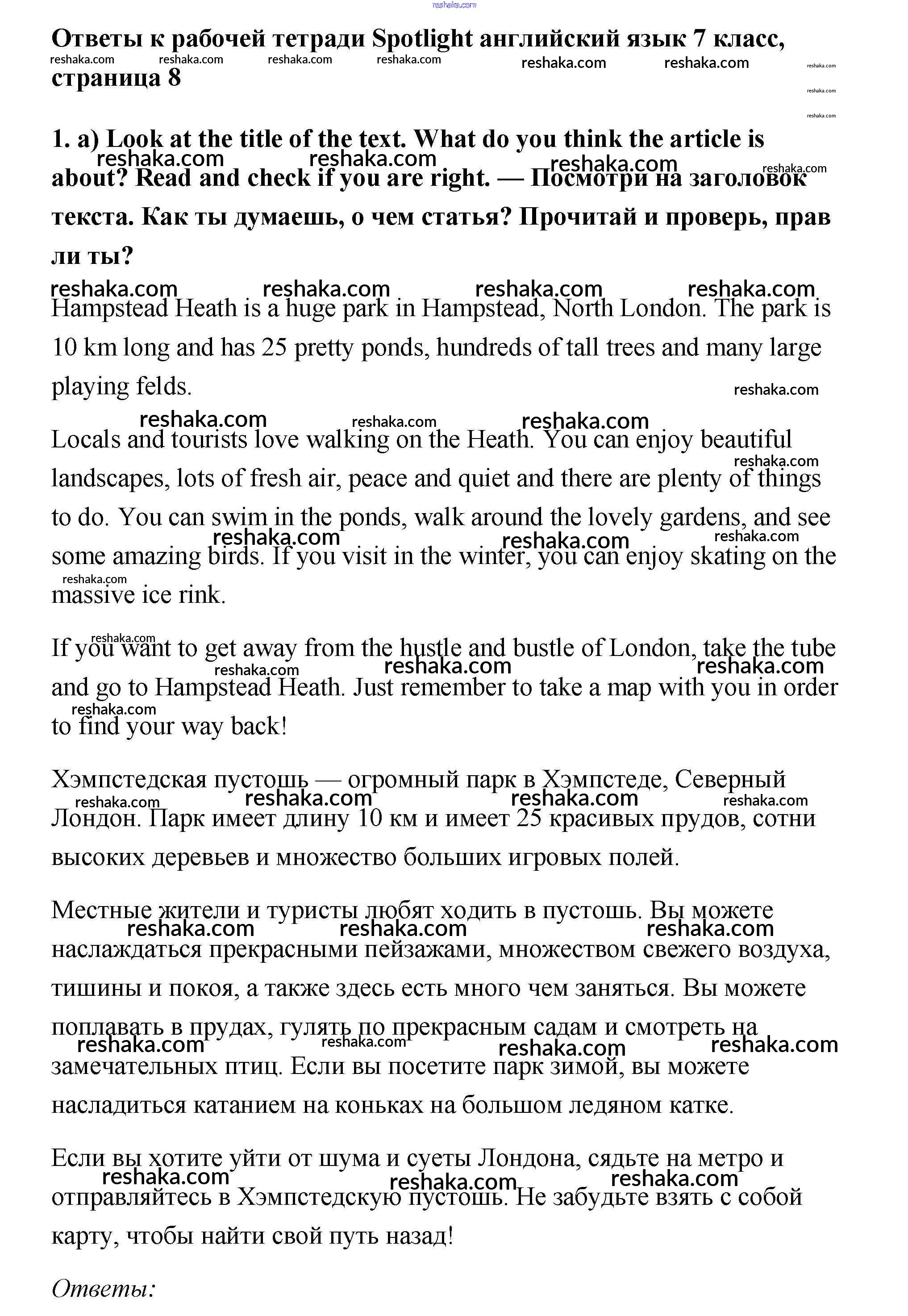Решака - онлайн ответы Английский язык Ваулина, Подоляко за 7 класс Рабочая тетрадь ФГОС 2015 - 1