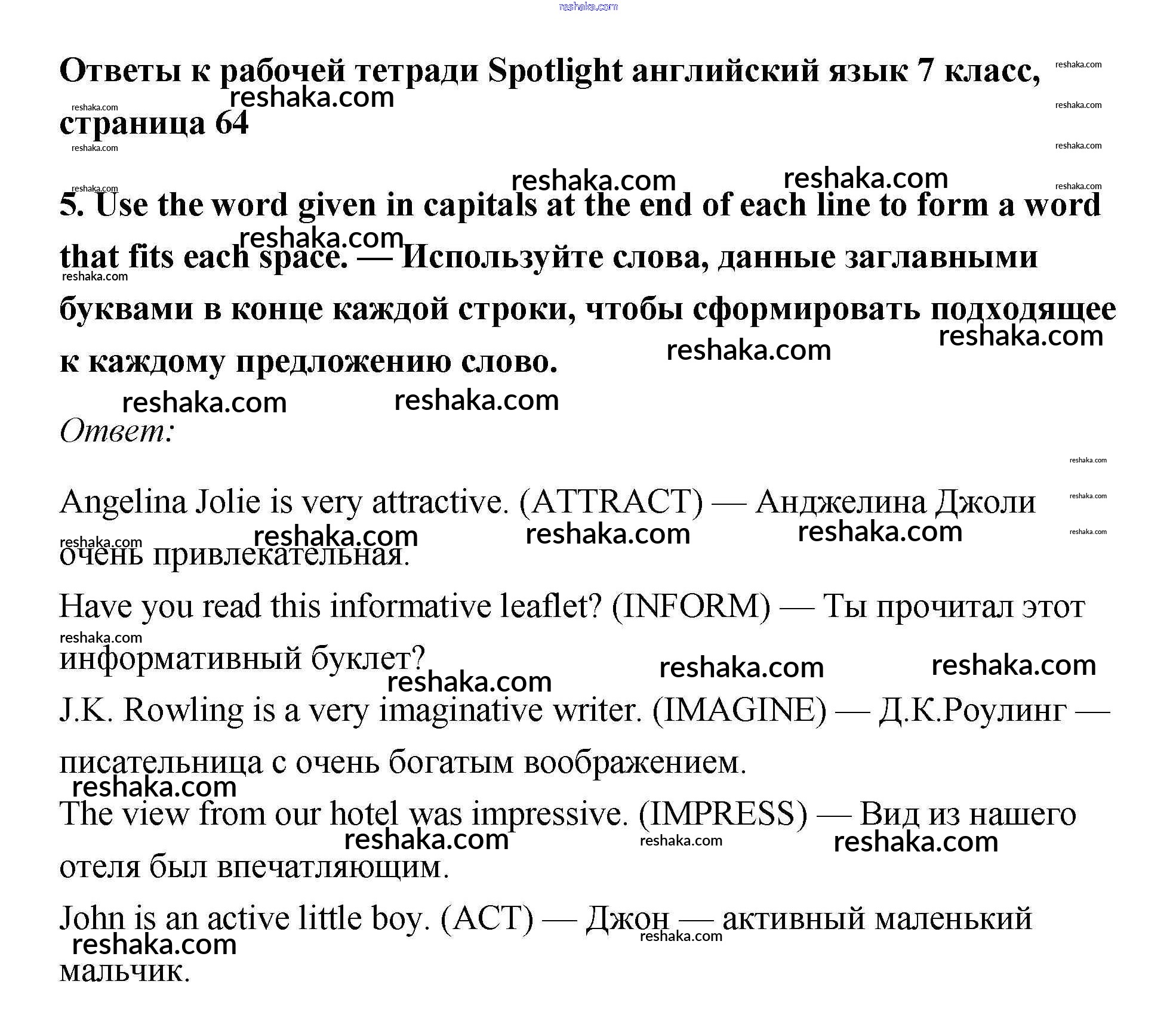 Решака - онлайн ответы Английский язык Ваулина, Подоляко за 7 класс Рабочая тетрадь ФГОС 2015 - 5