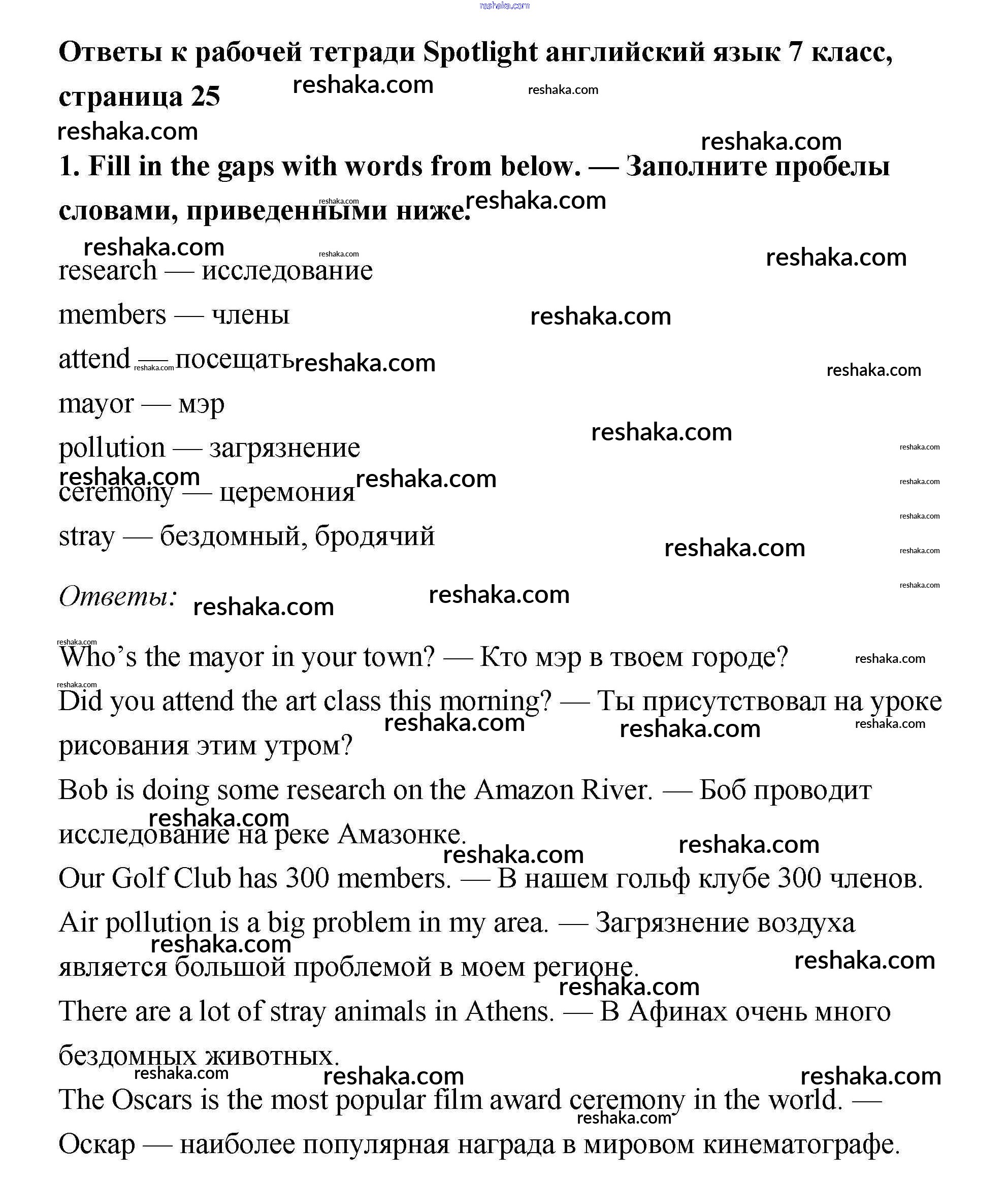 Решака - онлайн ответы Английский язык Ваулина, Подоляко за 7 класс Рабочая тетрадь ФГОС 2015 - 1