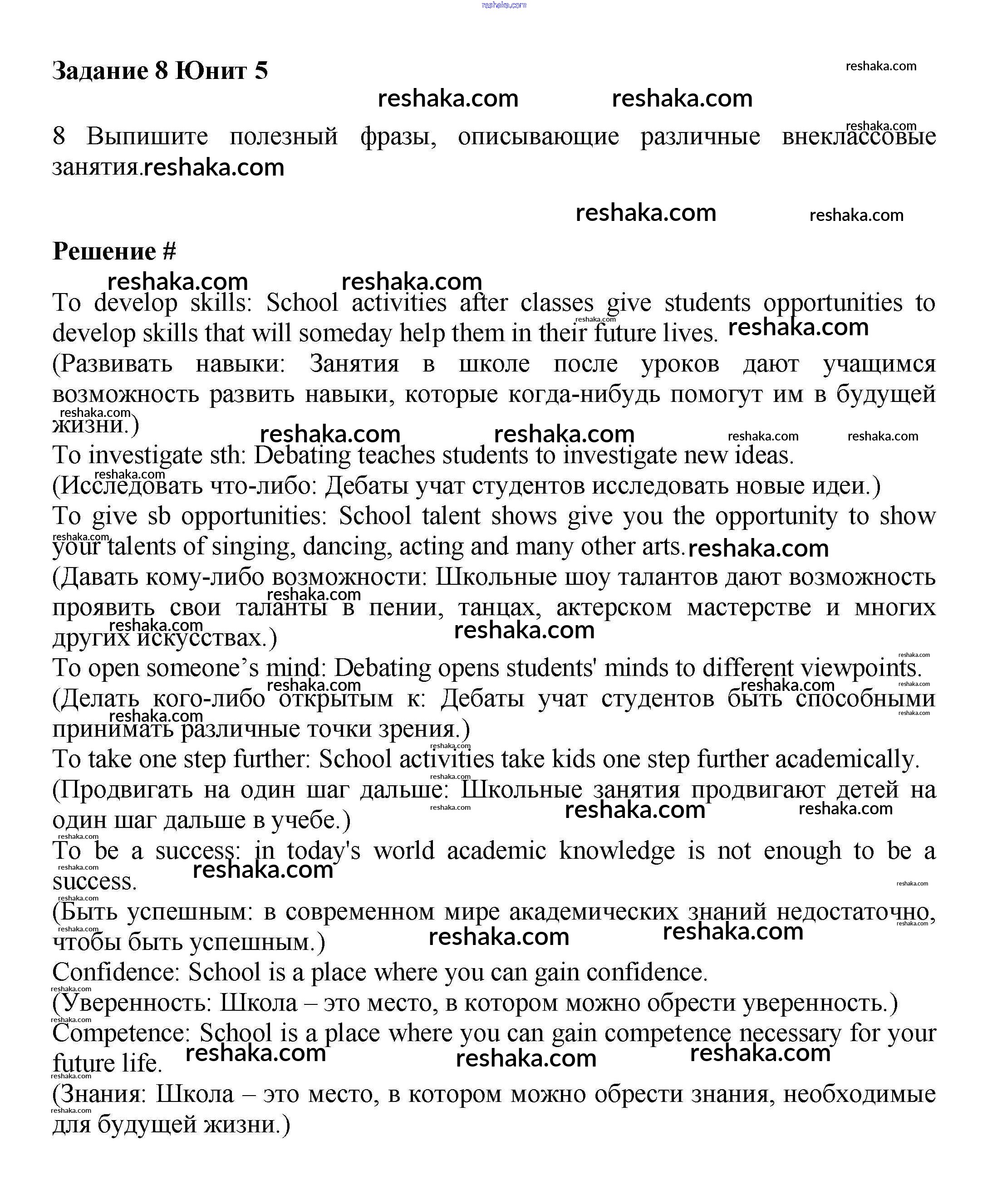 Представляем вам сборники по Английскому языку, с готовыми ответами к Учебнику Вербицкая школьной программы для учеников седьмой класса. Это не просто гдз с ответом, а с подсказками, как верно решить Unit 5. School activities Часть 1 8. Проверяй домашку с умом и получай высший балл!