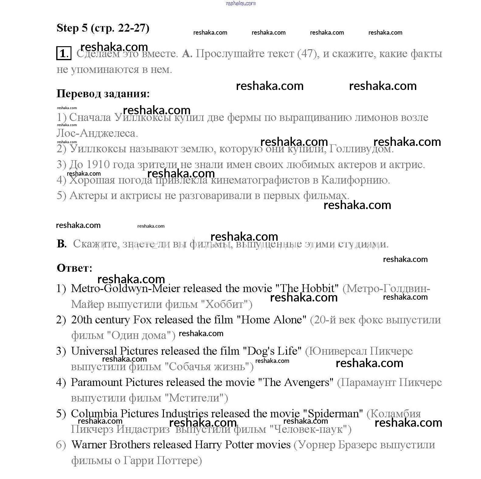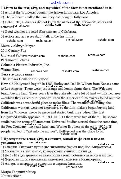 Представляем вам сборники по Английскому языку, с готовыми ответами к Учебнику Афанасьева школьной программы для учеников восьмой класса. Это не просто гдз с ответом, а с подсказками, как верно решить Step 5 Unit 3. Performing arts: cinema 1. Проверяй домашку с умом и получай высший балл!
