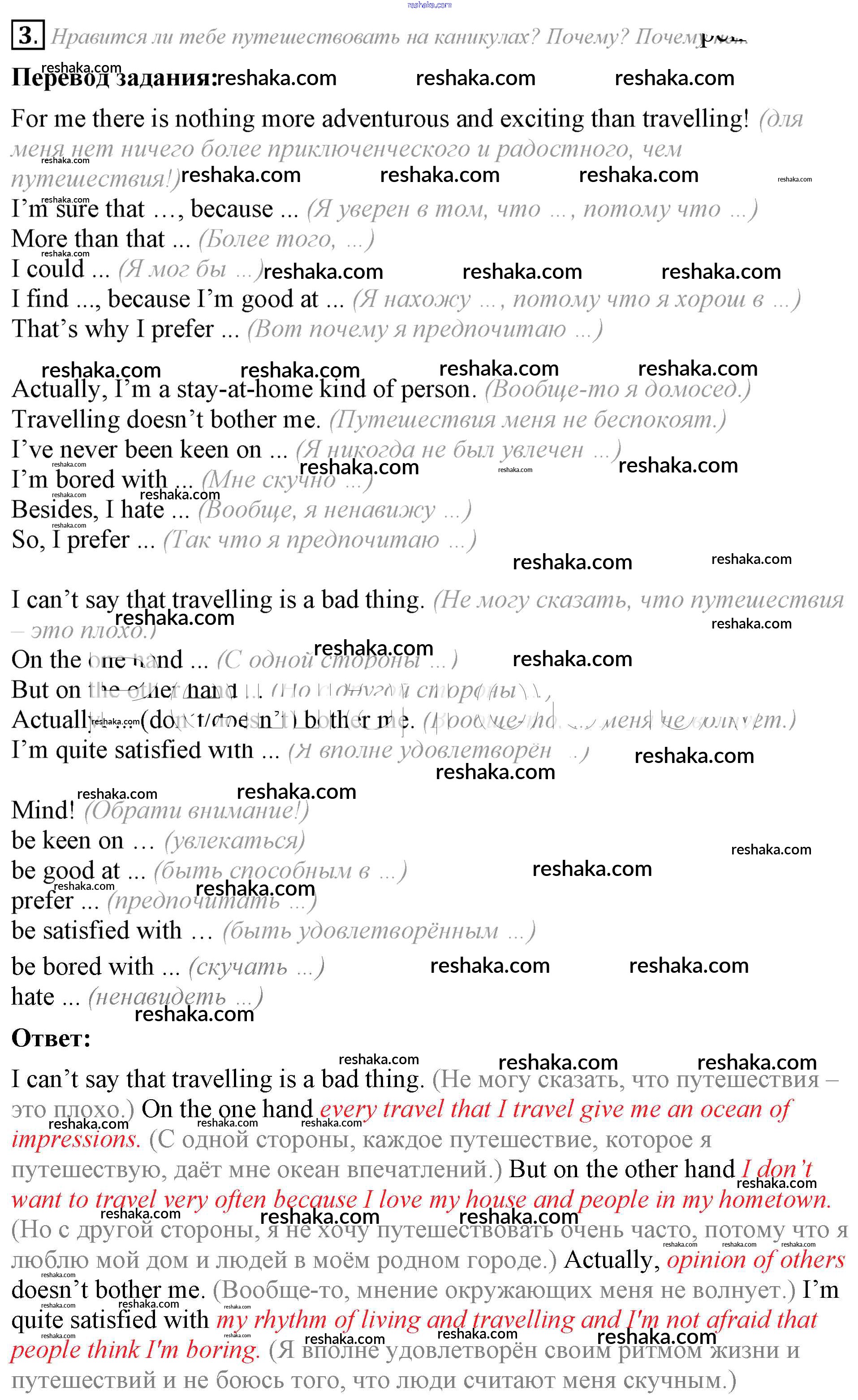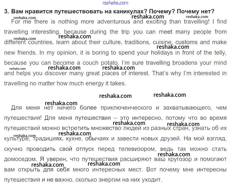 Представляем вам сборники по Английскому языку, с готовыми ответами к Учебнику Кузовлев школьной программы для учеников восьмой класса. Это не просто гдз с ответом, а с подсказками, как верно решить lesson 6 Unit 3. Do you like travelling? 3. Проверяй домашку с умом и получай высший балл!