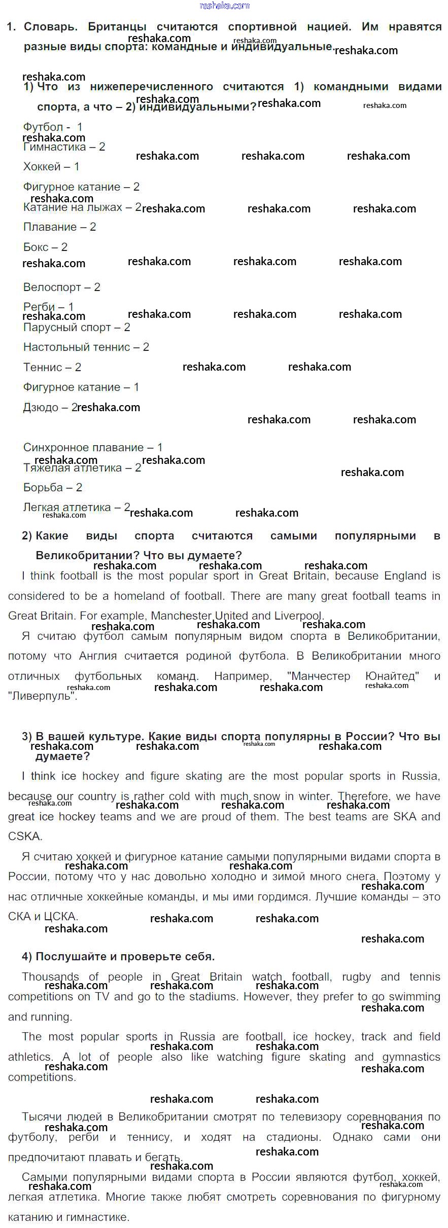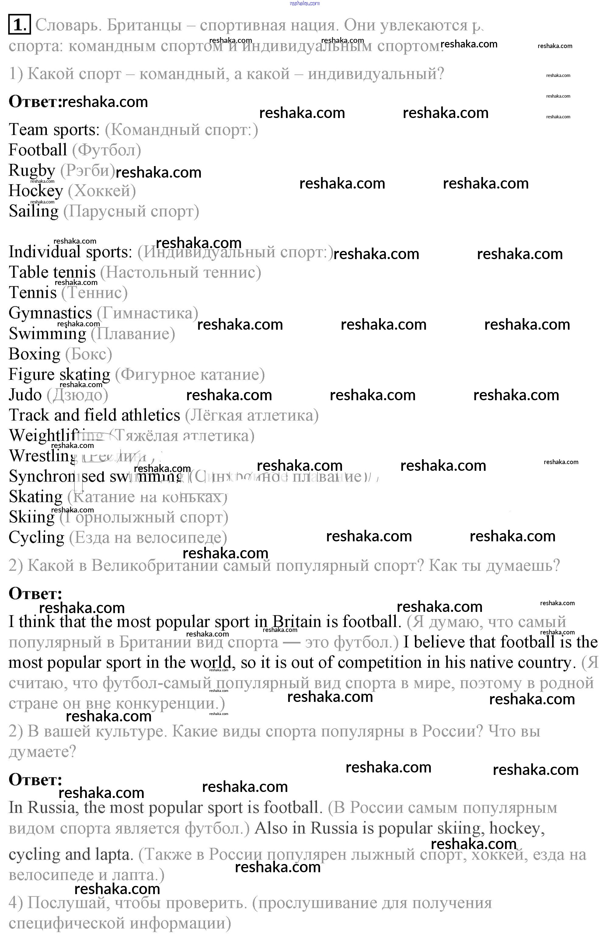 Представляем вам сборники по Английскому языку, с готовыми ответами к Учебнику Кузовлев школьной программы для учеников восьмой класса. Это не просто гдз с ответом, а с подсказками, как верно решить lesson 1 Unit 4. Are you fond of sport? 1. Проверяй домашку с умом и получай высший балл!
