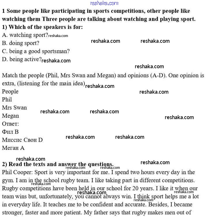 Представляем вам сборники по Английскому языку, с готовыми ответами к Учебнику Кузовлев школьной программы для учеников восьмой класса. Это не просто гдз с ответом, а с подсказками, как верно решить lesson 6 Unit 4. Are you fond of sport? 1. Проверяй домашку с умом и получай высший балл!