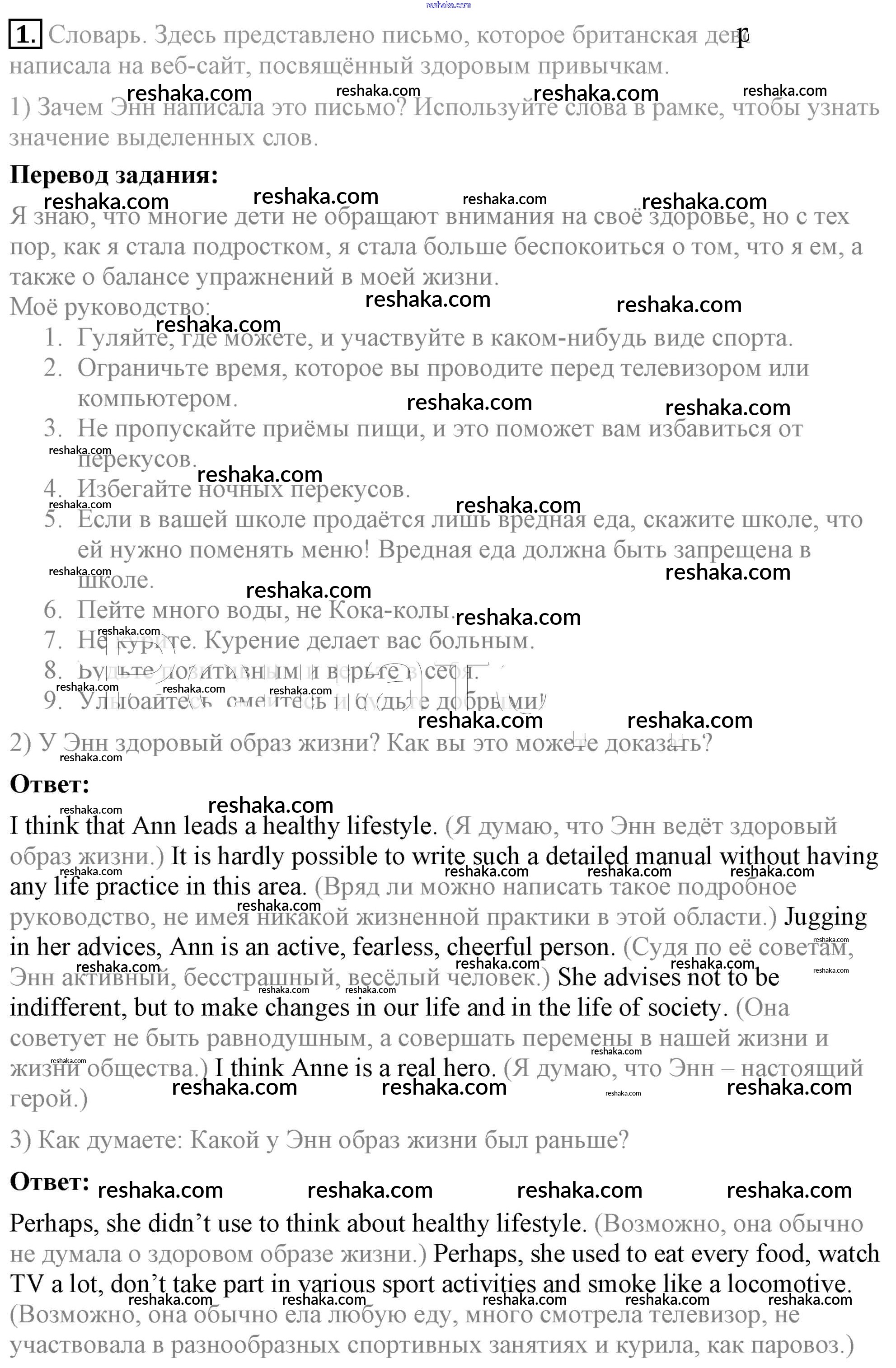 Представляем вам сборники по Английскому языку, с готовыми ответами к Учебнику Кузовлев школьной программы для учеников восьмой класса. Это не просто гдз с ответом, а с подсказками, как верно решить lesson 2 Unit 5. A healthy living guide 1. Проверяй домашку с умом и получай высший балл!