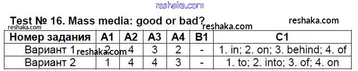 Решака - онлайн ответы Английский язык Лысакова за 8 класс Контрольно-измерительные материалы (КИМ) ФГОС 2018 - Test №16. Mass media - good or bad