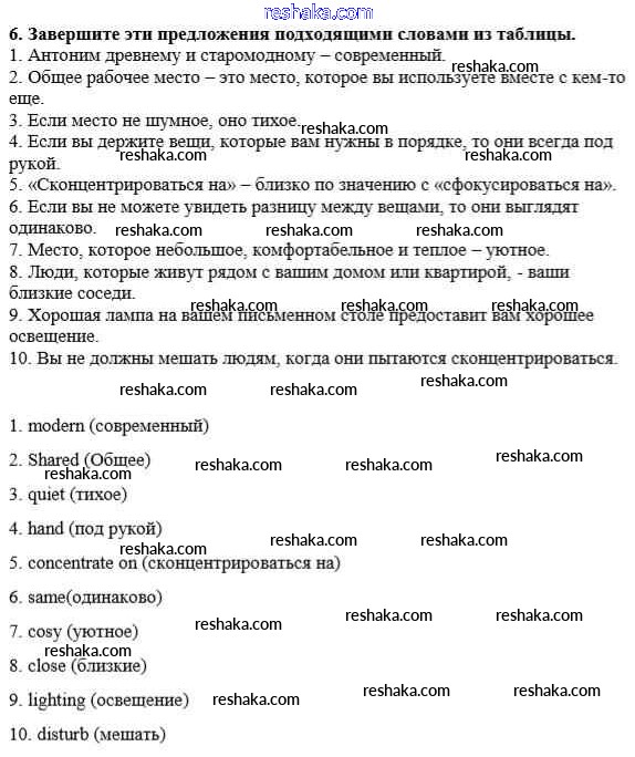 Представляем вам сборники по Английскому языку, с готовыми ответами к Учебнику Дворецкая школьной программы для учеников восьмой класса. Это не просто гдз с ответом, а с подсказками, как верно решить Урок 7 Unit 6. It feels like home 6. Проверяй домашку с умом и получай высший балл!