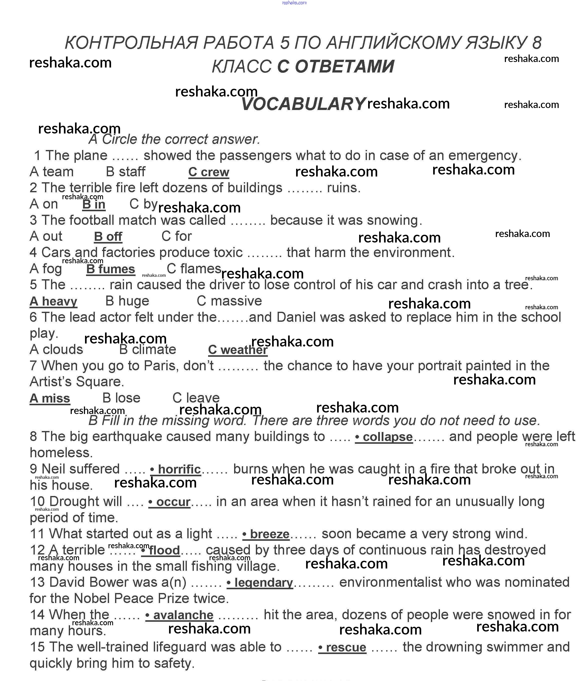 Решака - онлайн ответы Английский язык Ваулина, Дули за 8 класс Контрольные задания ФГОС 2018 - A, B