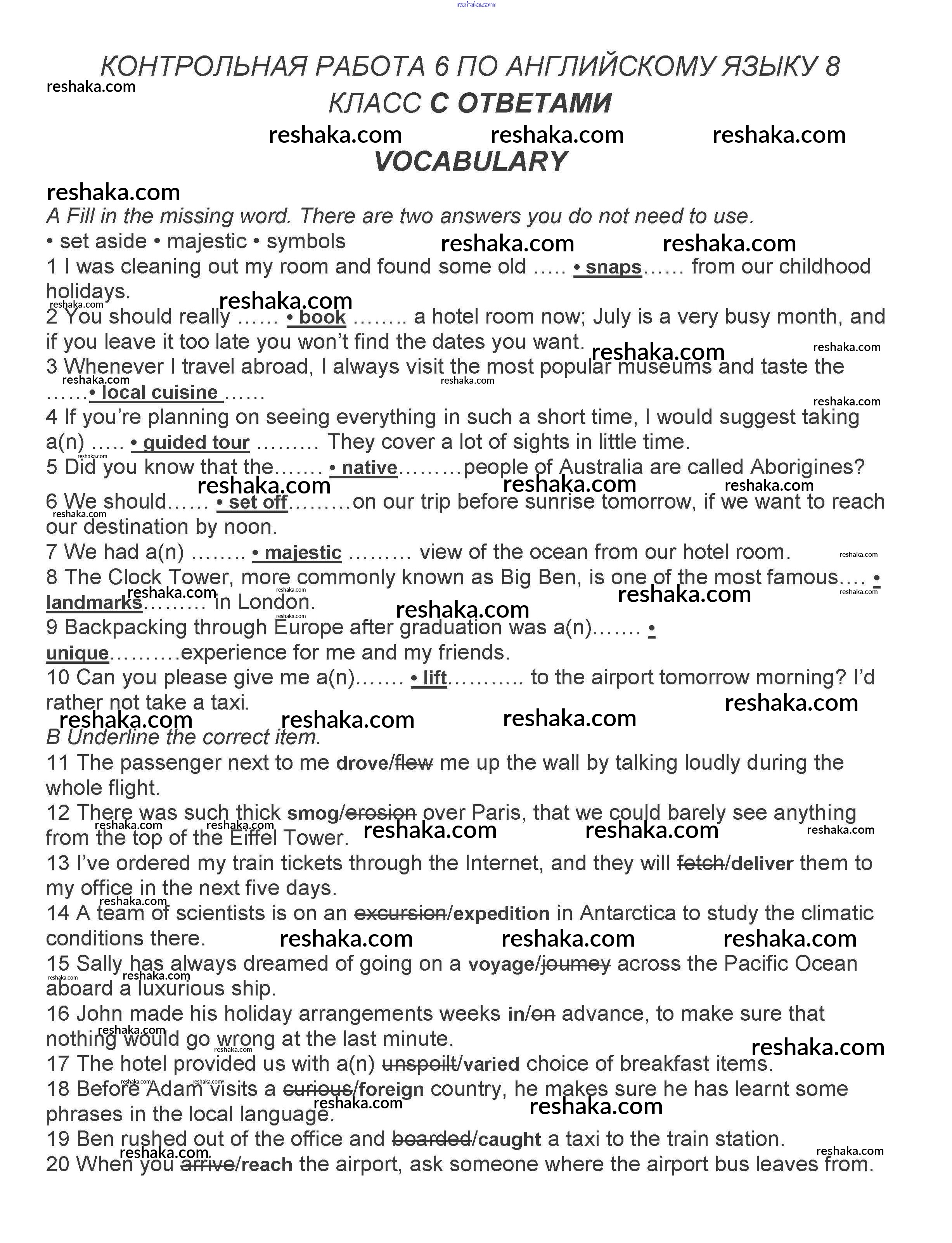 Решака - онлайн ответы Английский язык Ваулина, Дули за 8 класс Контрольные задания ФГОС 2018 - A, B