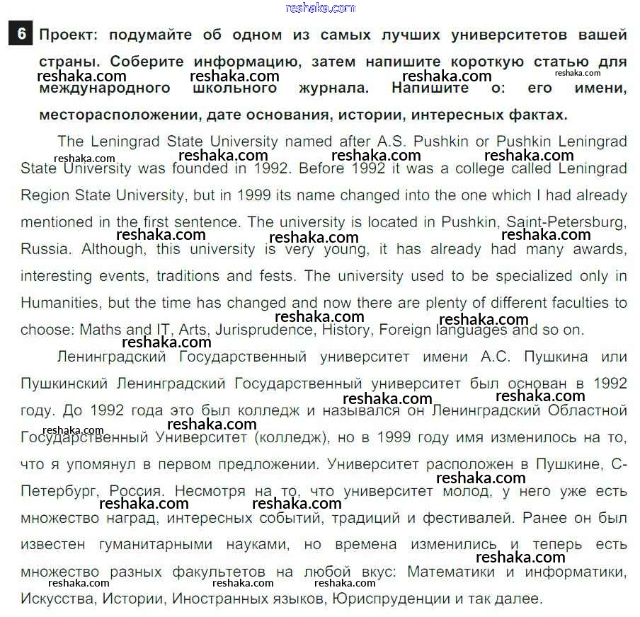 Решака - онлайн ответы Английский язык Ваулина, Дули за 8 класс Учебник ФГОС 2015 - 6