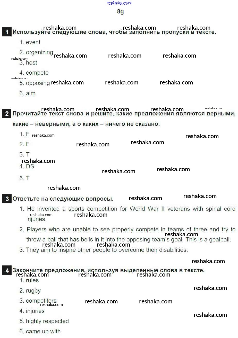 Решака - онлайн ответы Английский язык Ваулина, Дули за 8 класс Рабочая тетрадь ФГОС 2016 - 8g