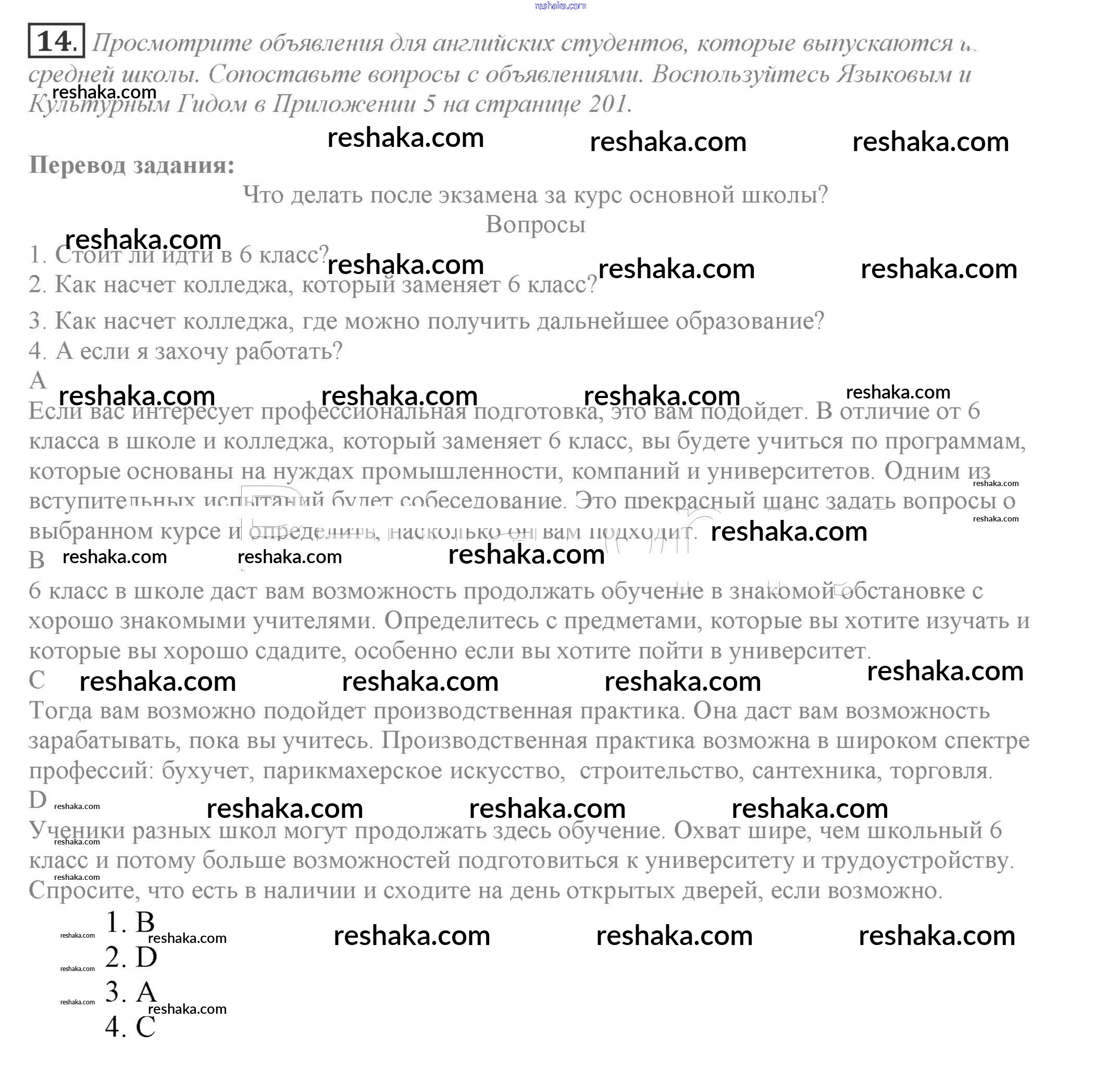 Решака - онлайн ответы Английский язык Биболетова, Бабушис за 9 класс Учебник ФГОС 2014 - 14