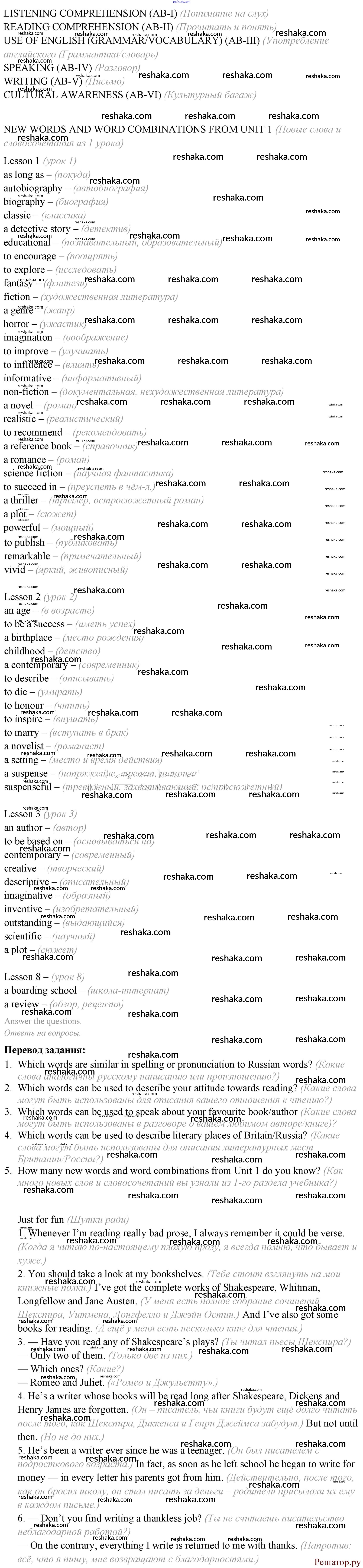 Решака - онлайн ответы Английский язык Кузовлев, Лапа за 9 класс Учебник ФГОС 2015 - 1