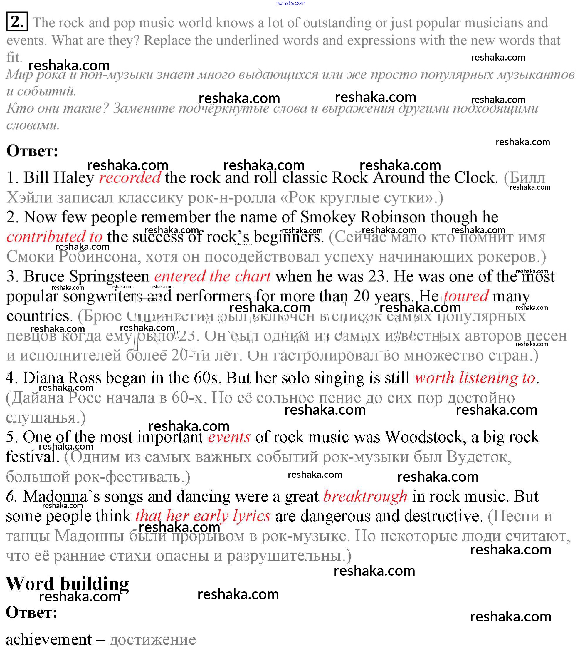 Представляем вам сборники по Английскому языку, с готовыми ответами к Учебнику Кузовлев школьной программы для учеников девятый класса. Это не просто гдз с ответом, а с подсказками, как верно решить Урок 2 Unit 2. Let the music begin ... 2. Проверяй домашку с умом и получай высший балл!
