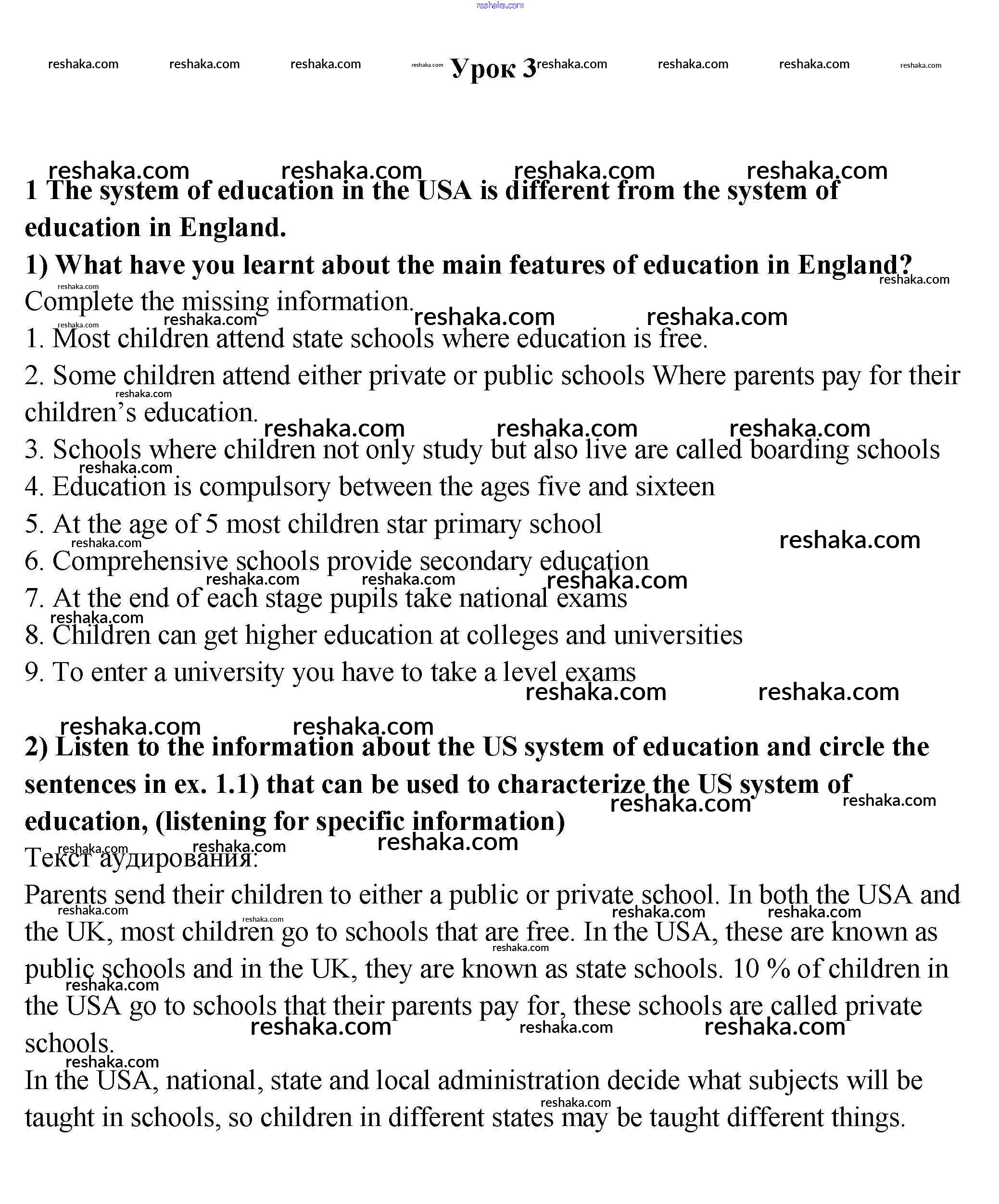 Представляем вам сборники по Английскому языку, с готовыми ответами к Учебнику Кузовлев школьной программы для учеников девятый класса. Это не просто гдз с ответом, а с подсказками, как верно решить Урок 3 Unit 4. What school do you go to? 1. Проверяй домашку с умом и получай высший балл!