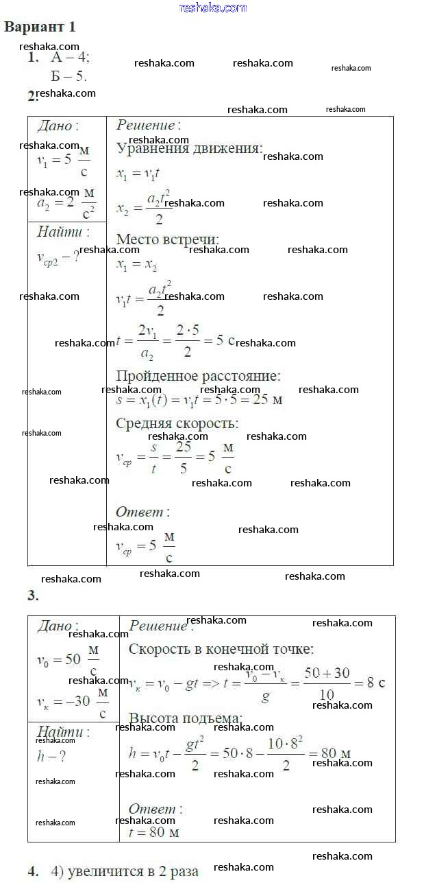 Решака - онлайн ответы Физика Ерюткин, Ерюткина за 10 класс Самостоятельные и контрольные работы Базовый и углубленный уровень ФГОС 2018 - 1