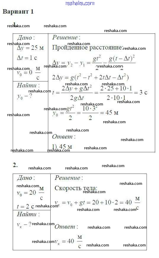 Решака - онлайн ответы Физика Ерюткин, Ерюткина за 10 класс Самостоятельные и контрольные работы Базовый и углубленный уровень ФГОС 2018 - 1